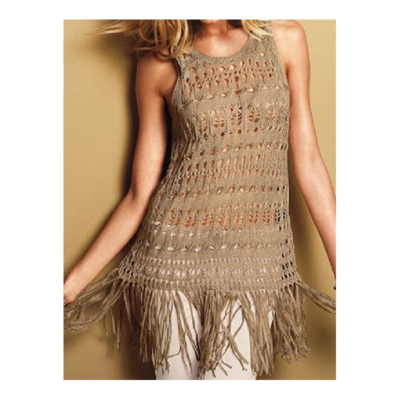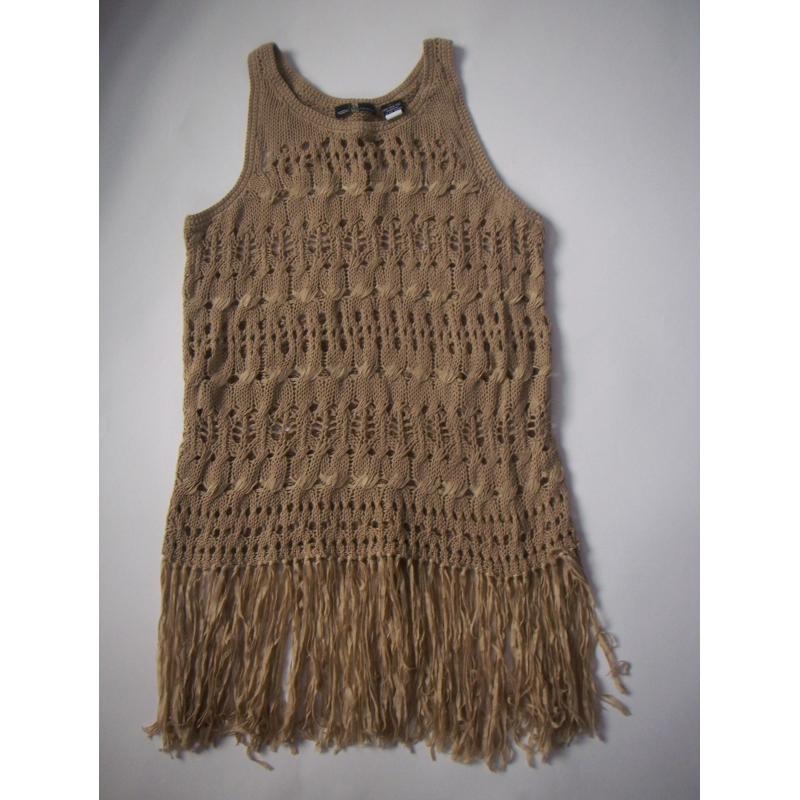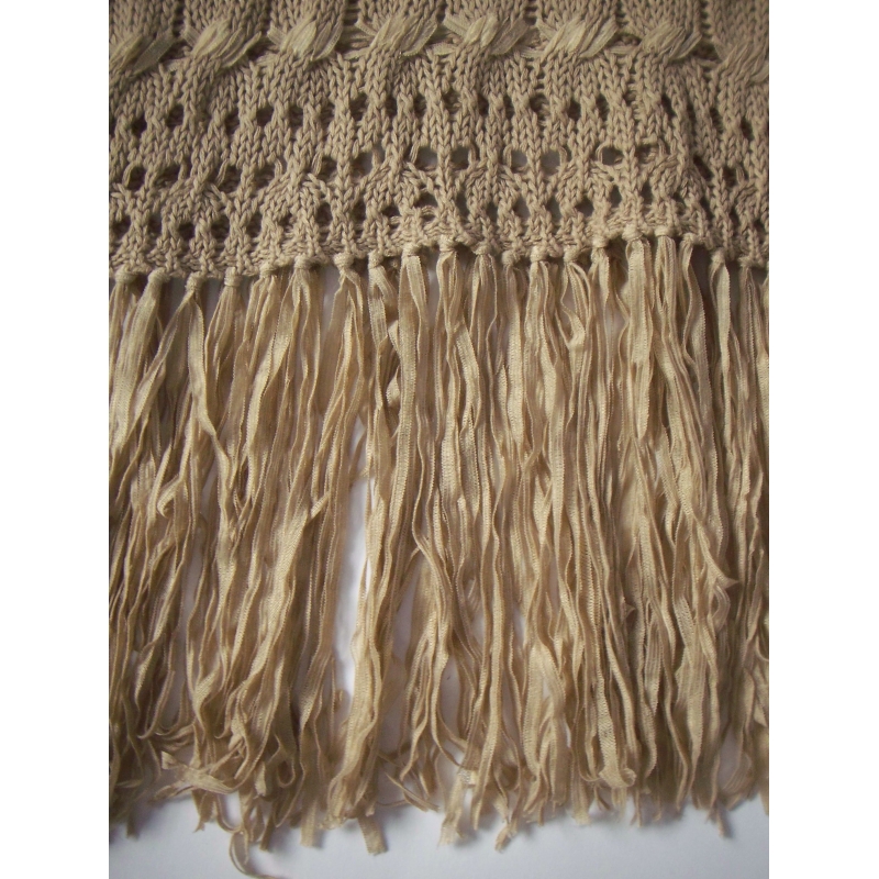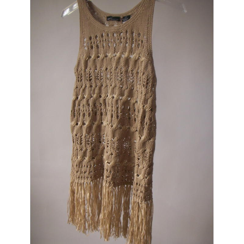 Top din tricotaj cu gaurele, cu tiv din franjuri lungi