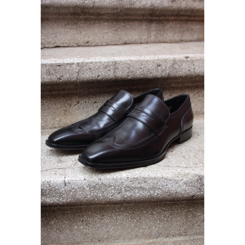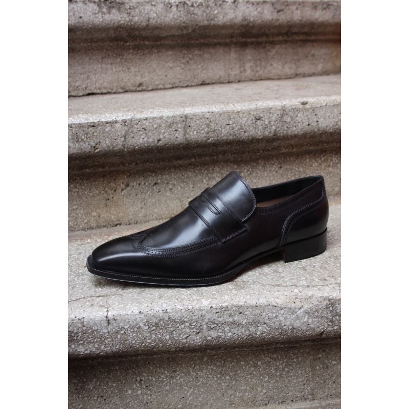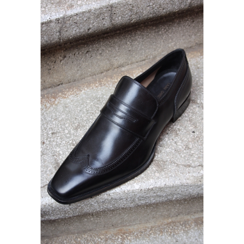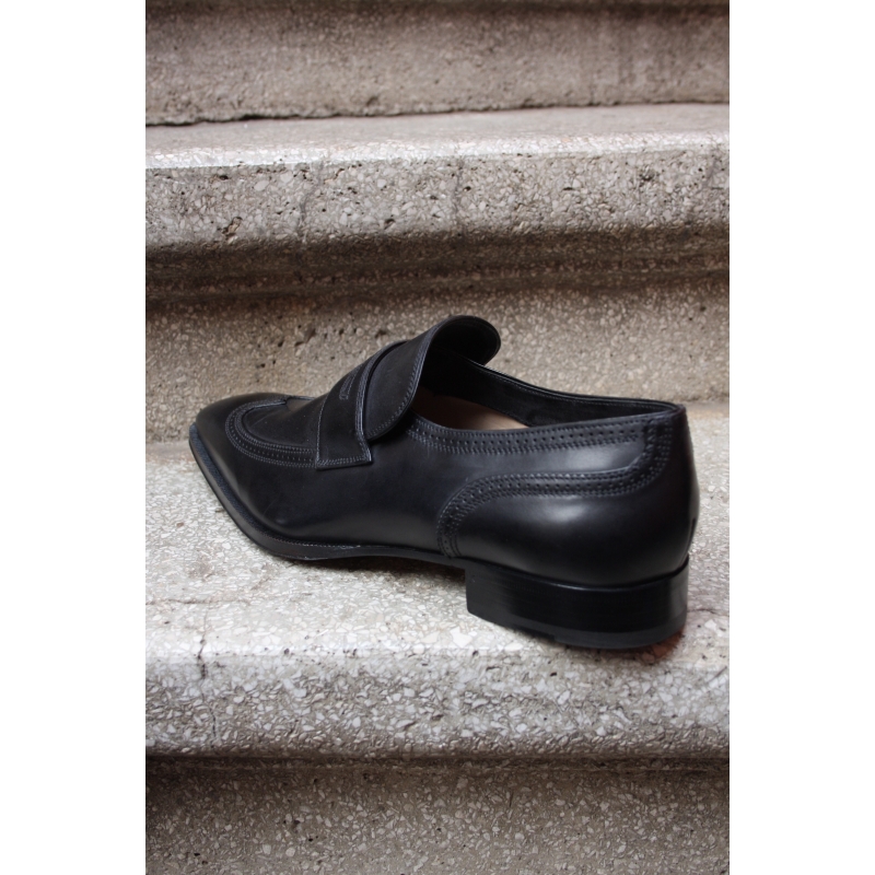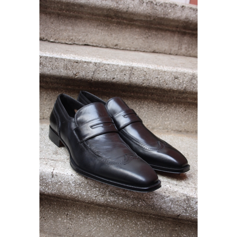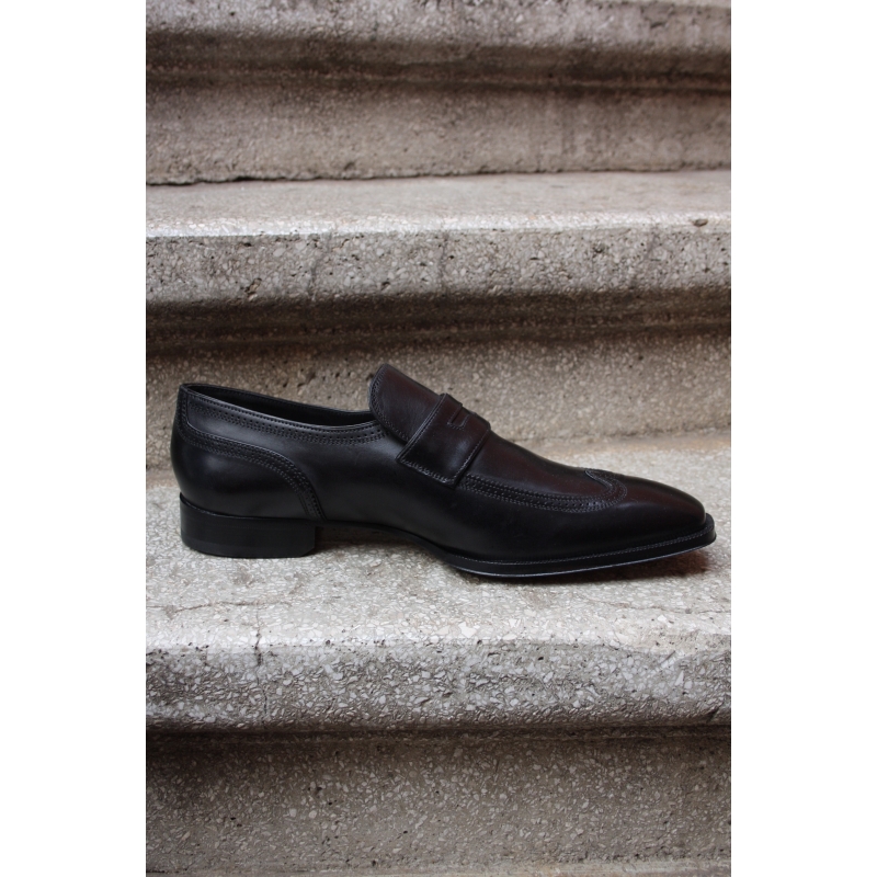 - Pantof mocasini, cu bot conic patrat si cusaturi in stil oxford.