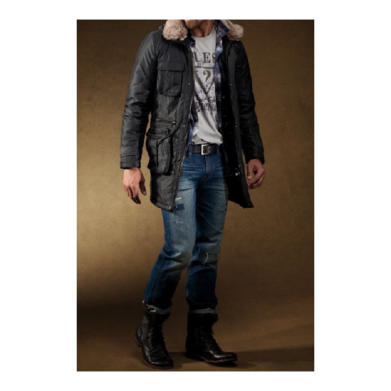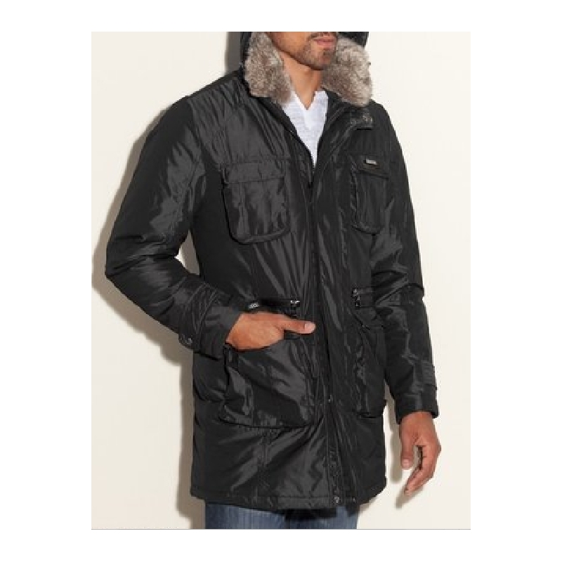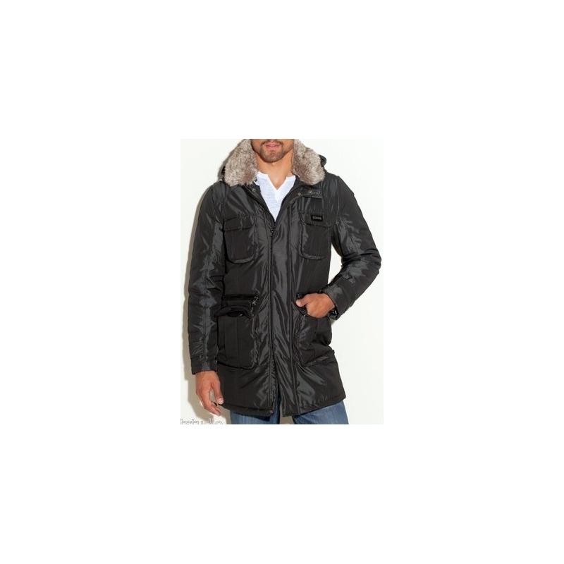 - Geaca de iarna, lunga, cu vesta interioara, gluga si guler de blana detasabile.