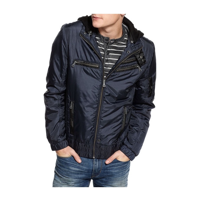 - Jacheta subtire, captusita, cu buzunare multiple si gluga din tricotaj de acrilic, detasabila.