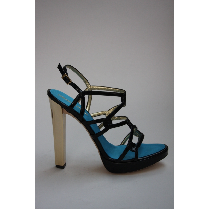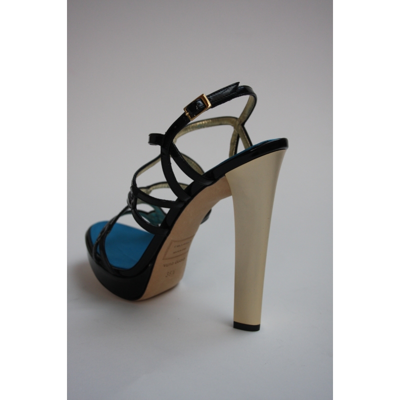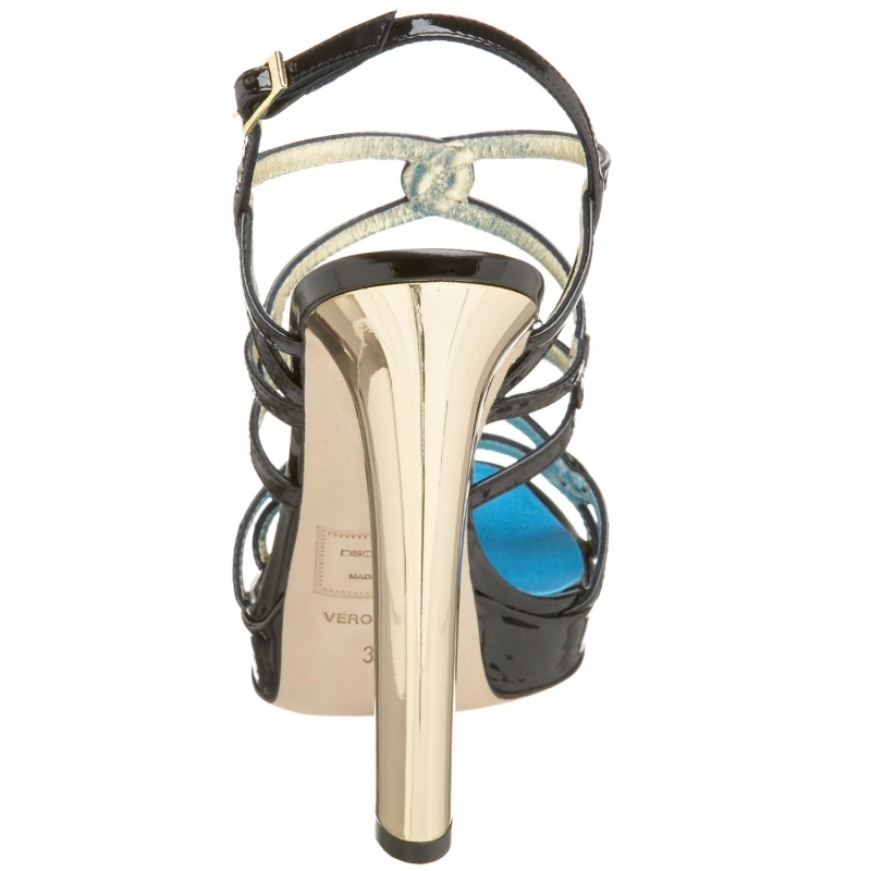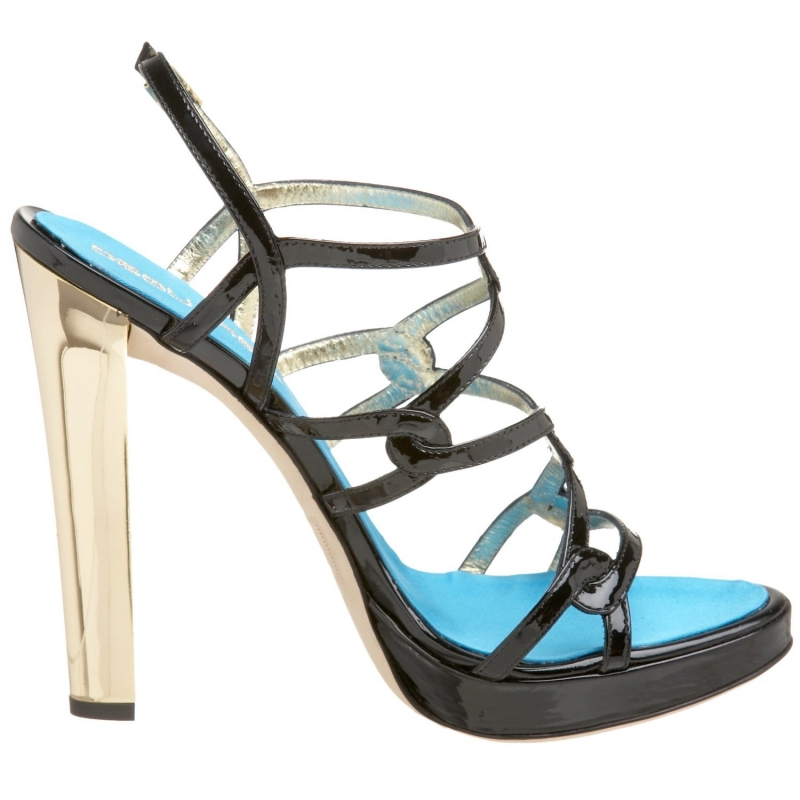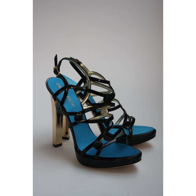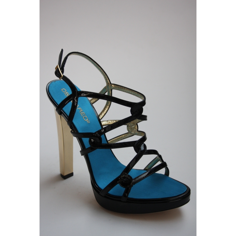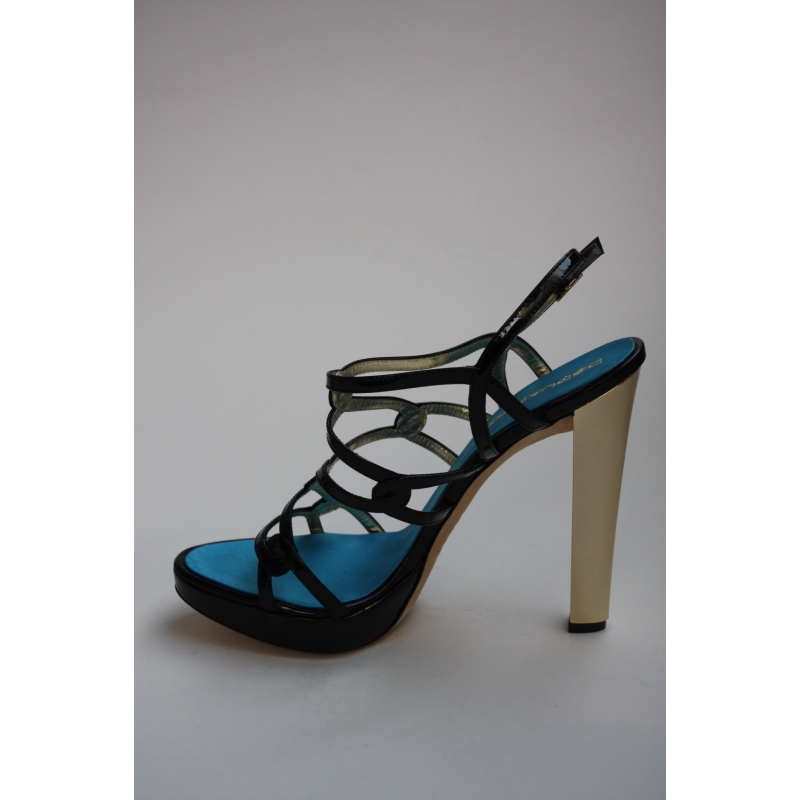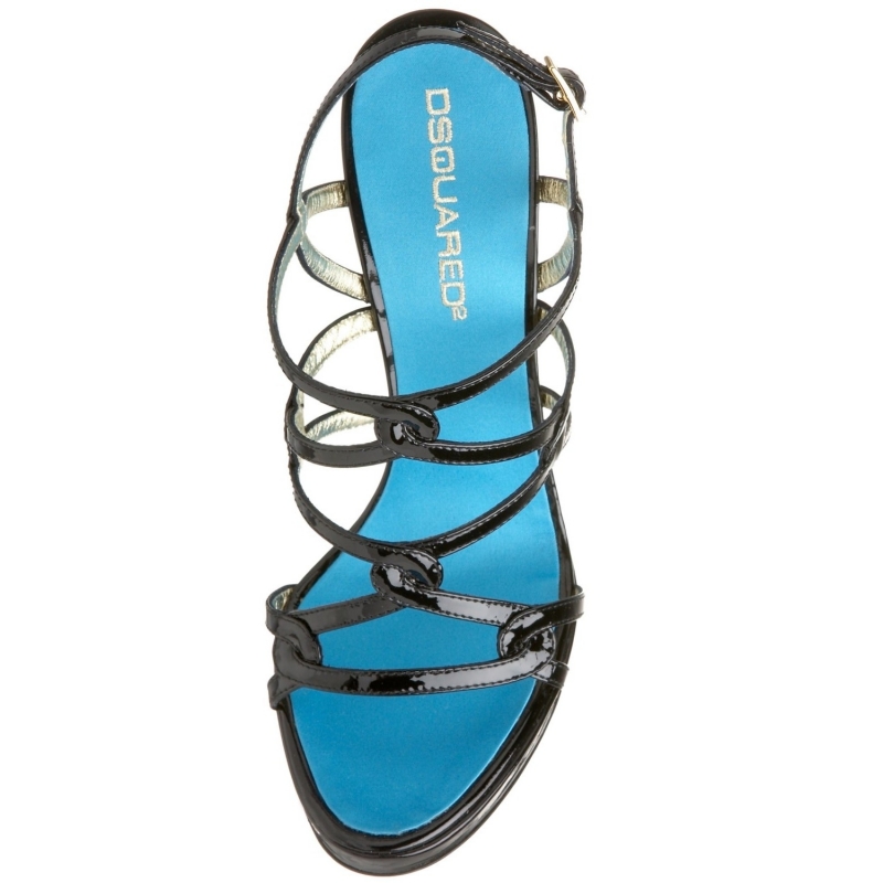 Sandale din piele lacuite cu barete subtiri si toc oglinda