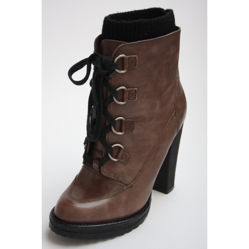 - Botine din piele naturala, cu soseta tricotata si elemente hiker.