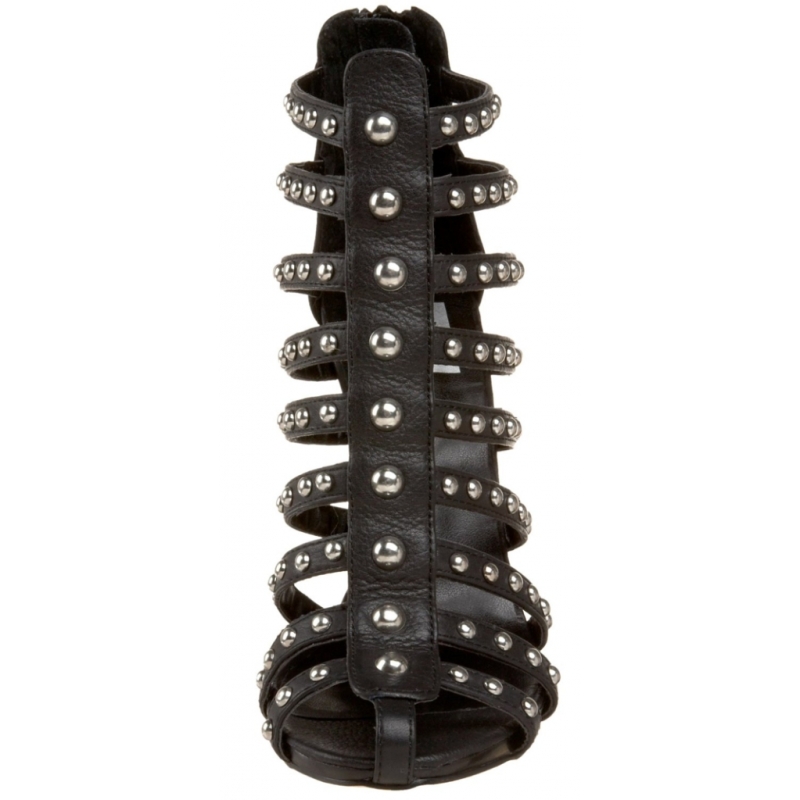 Sandale din piele cu multe barete subtiri, accesorizate cu tinte metalice