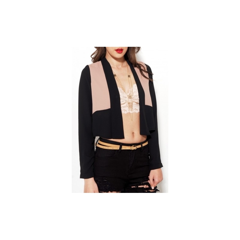 - Sacou scurt pana in talie, cu maneci lungi si imprimeu colorbloc.