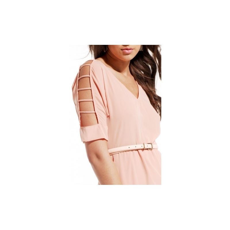 • Se inchide cu fermoar ascuns la spate, iar in talia inalta are o curea detasabila. Are 2 buzunare laterale si este captusita.