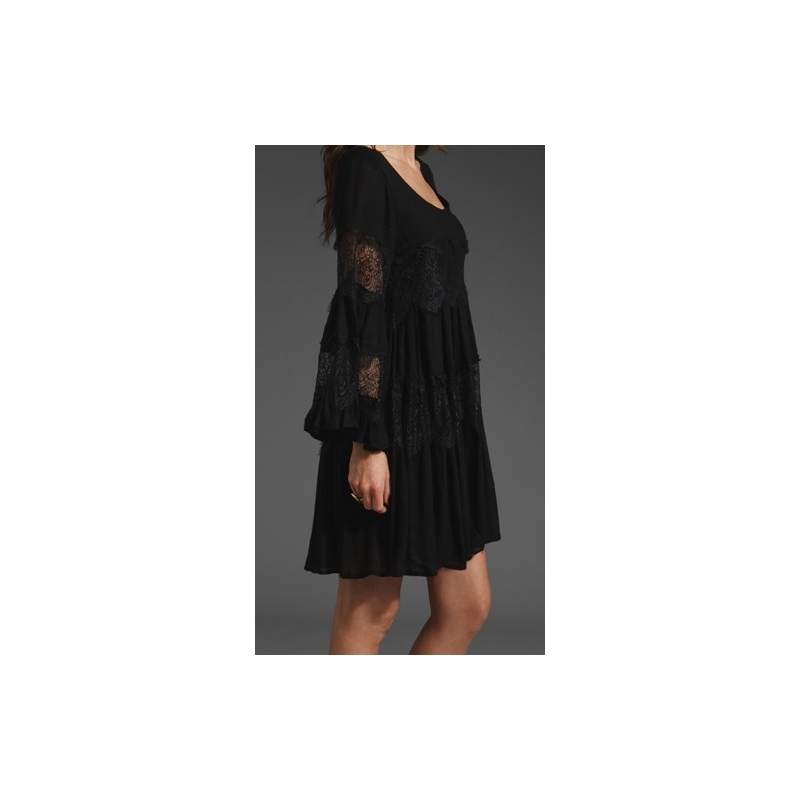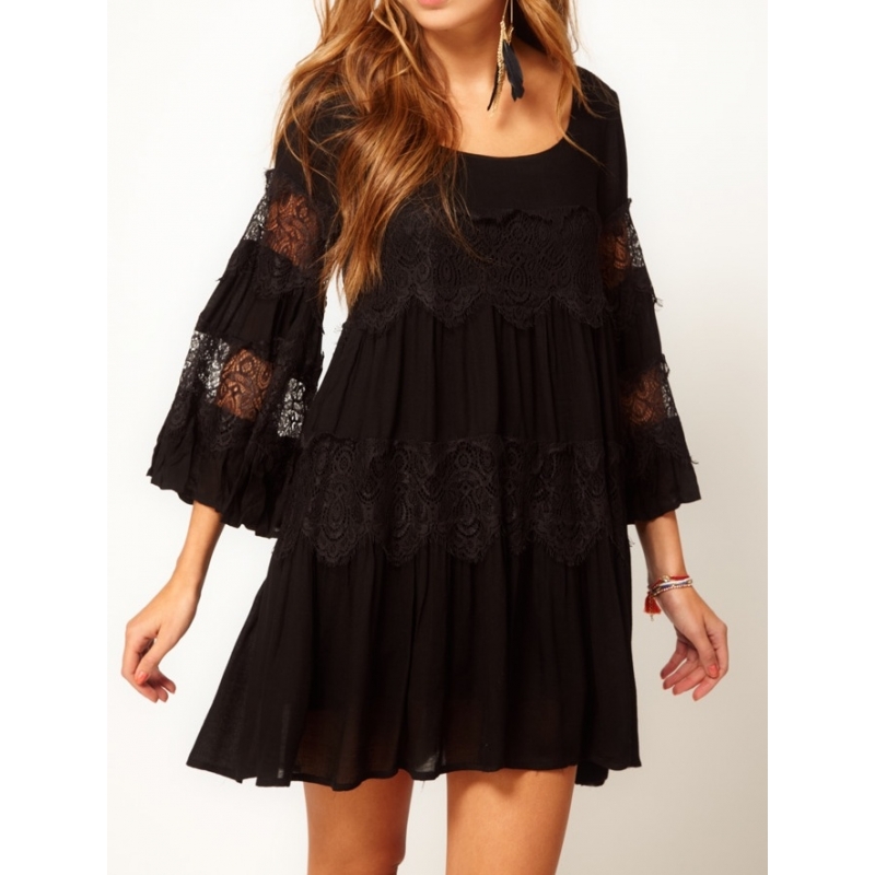 Rochie supradimensionata cu insertii de dantela cu aspect crosetat si maneci clopot