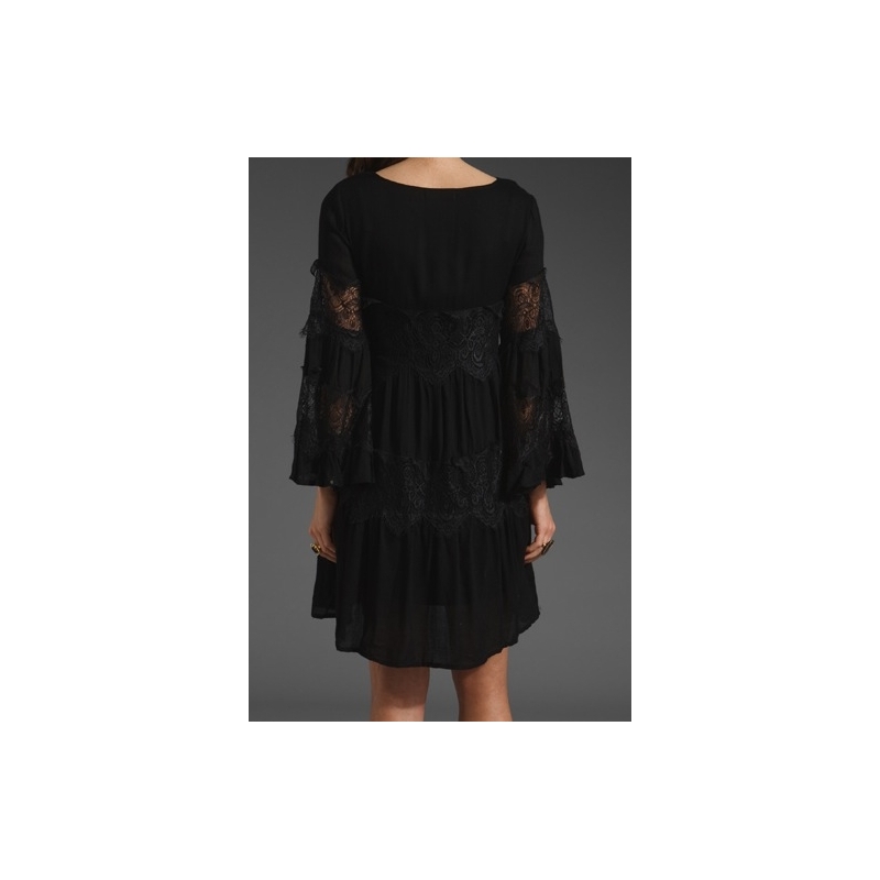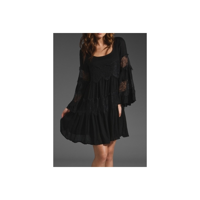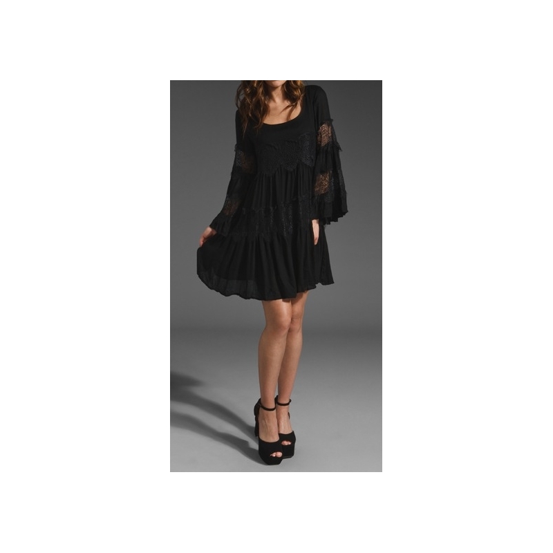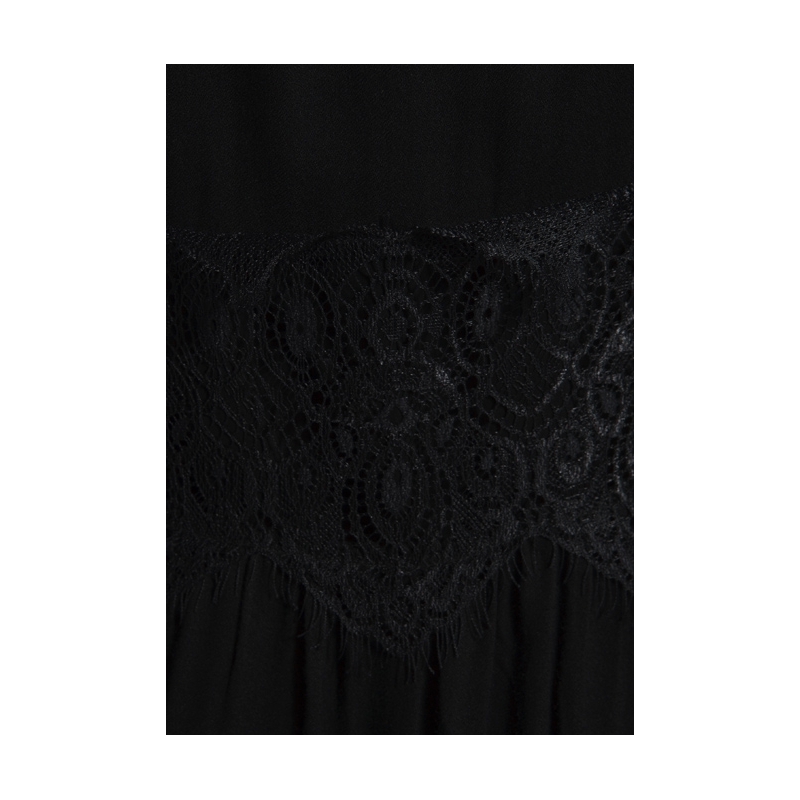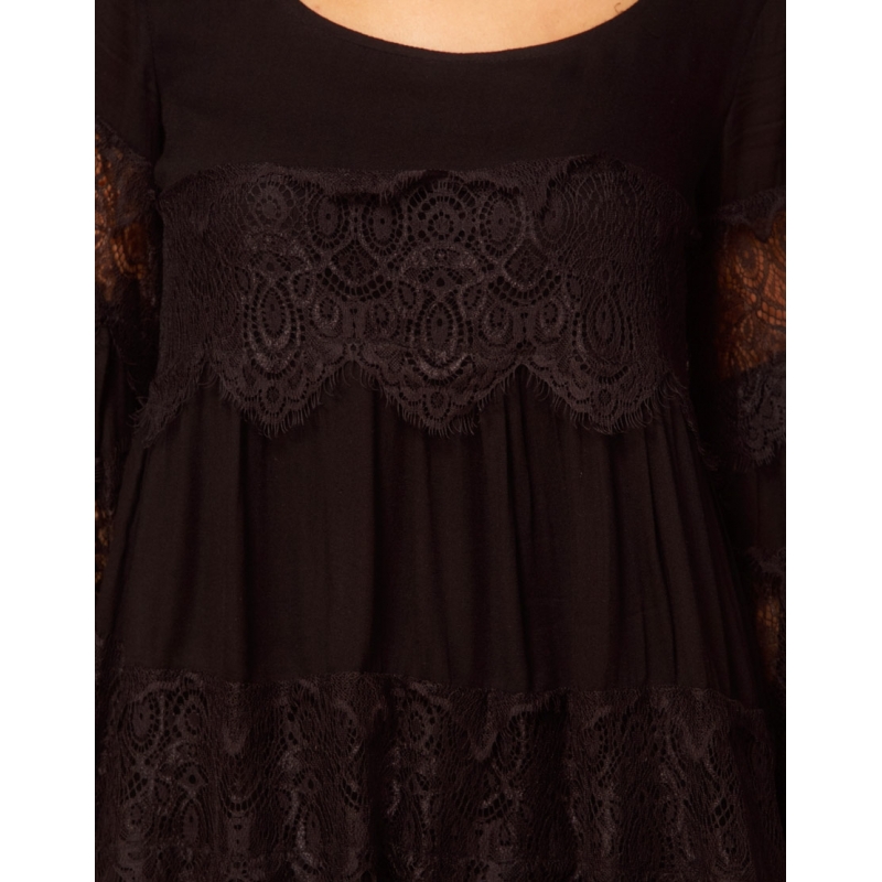 - Rochie supradimensionata, cu insertii de dantela cu aspect crosetat, maneci clopot 3/4.