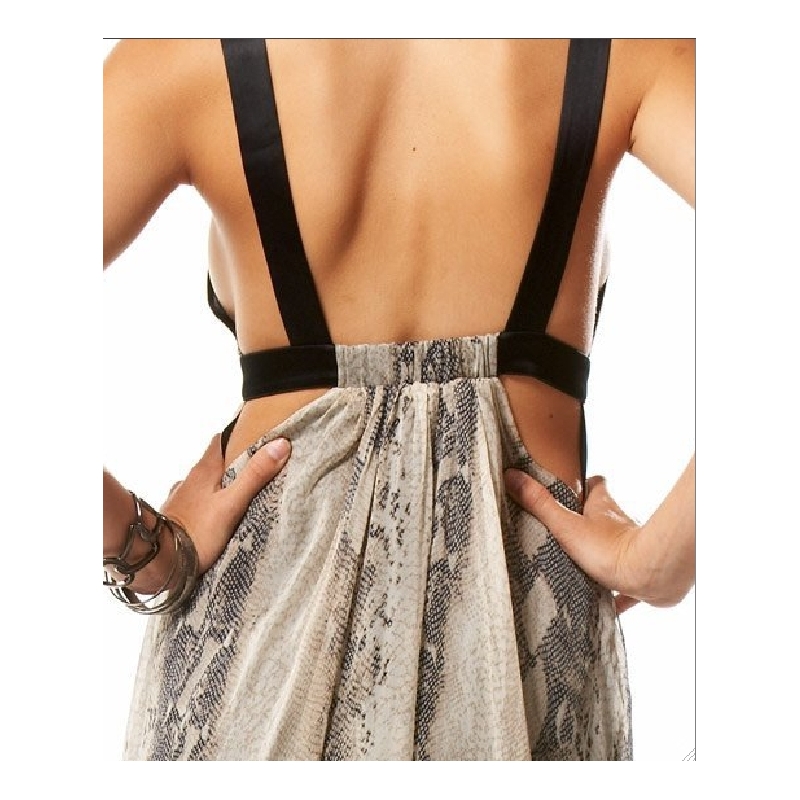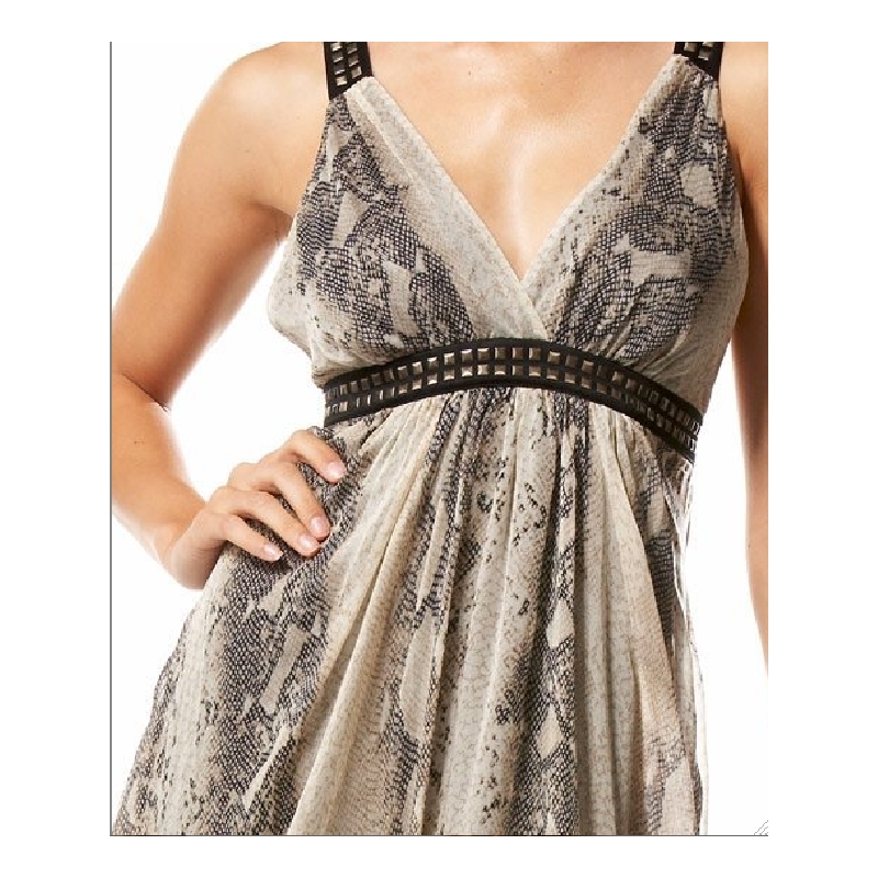 - Rochie maxi cu print "piele de sarpe" si tinte metalice aplicate.