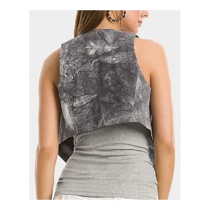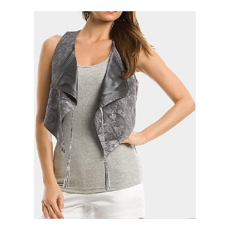 Vesta asimetrica din piele intoarsa decolorata si vopsita, cu aspect de marmura