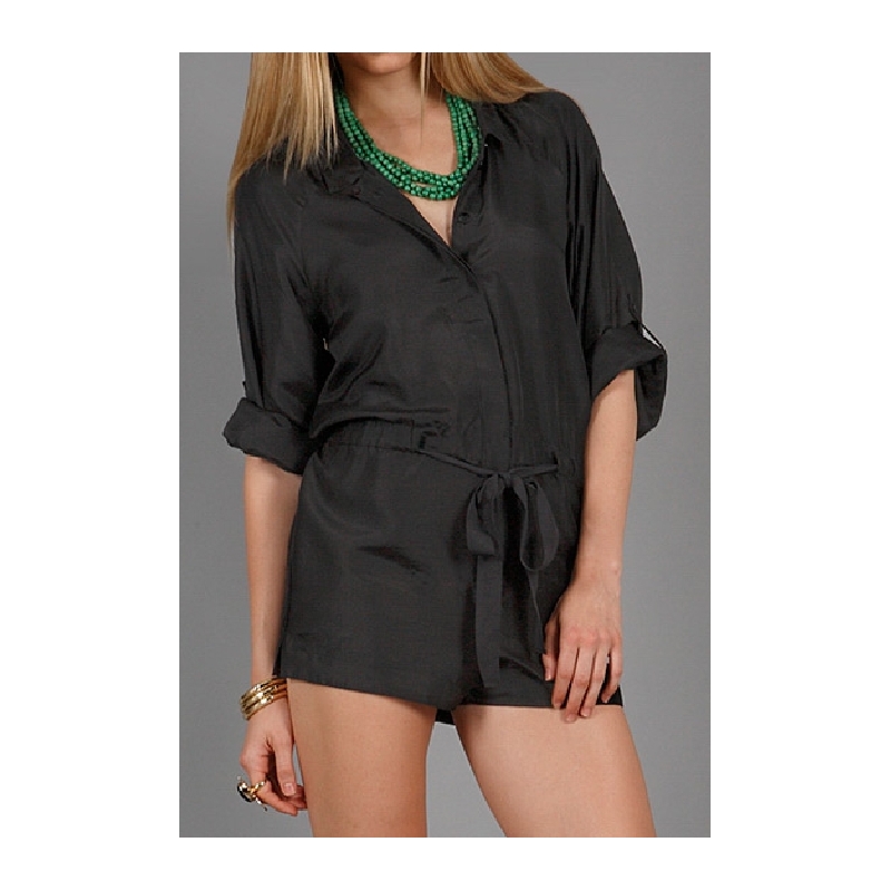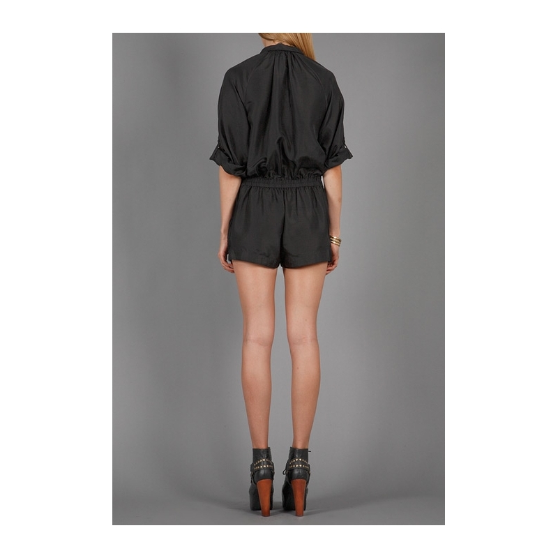Salopeta cu maneci lungi raglan si pantaloni scurti, din matase