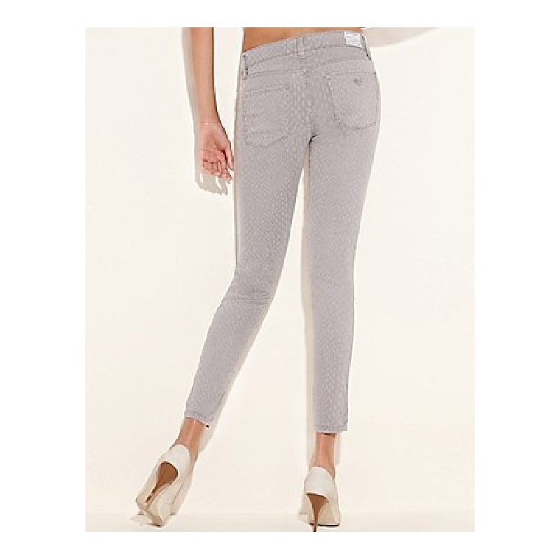 - Talie joasa, croi slim, constructie clasica de 5 buzunare, gaici pentru curea, lungime pana la glezne.