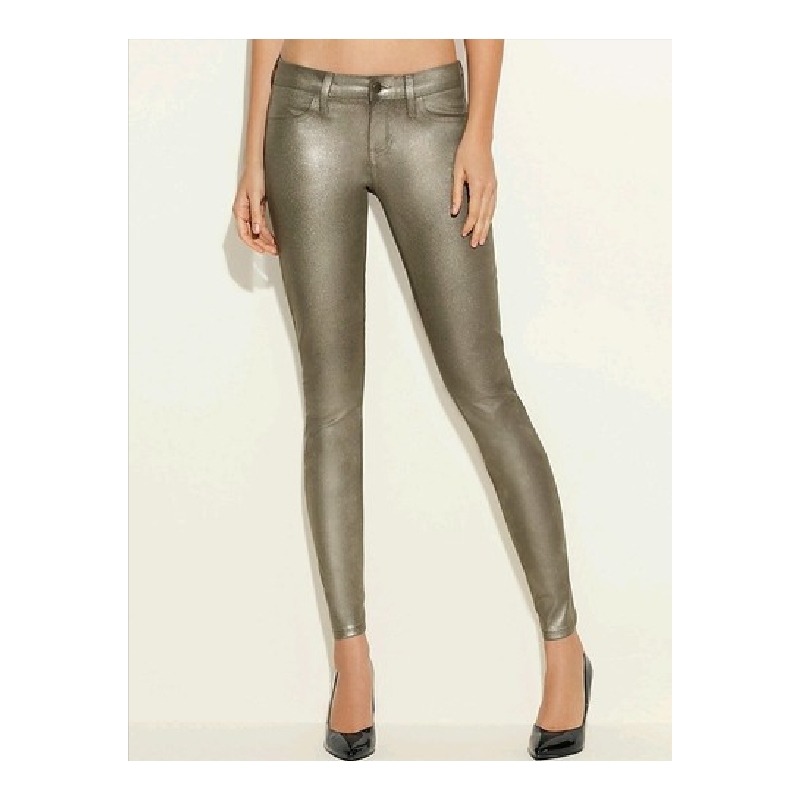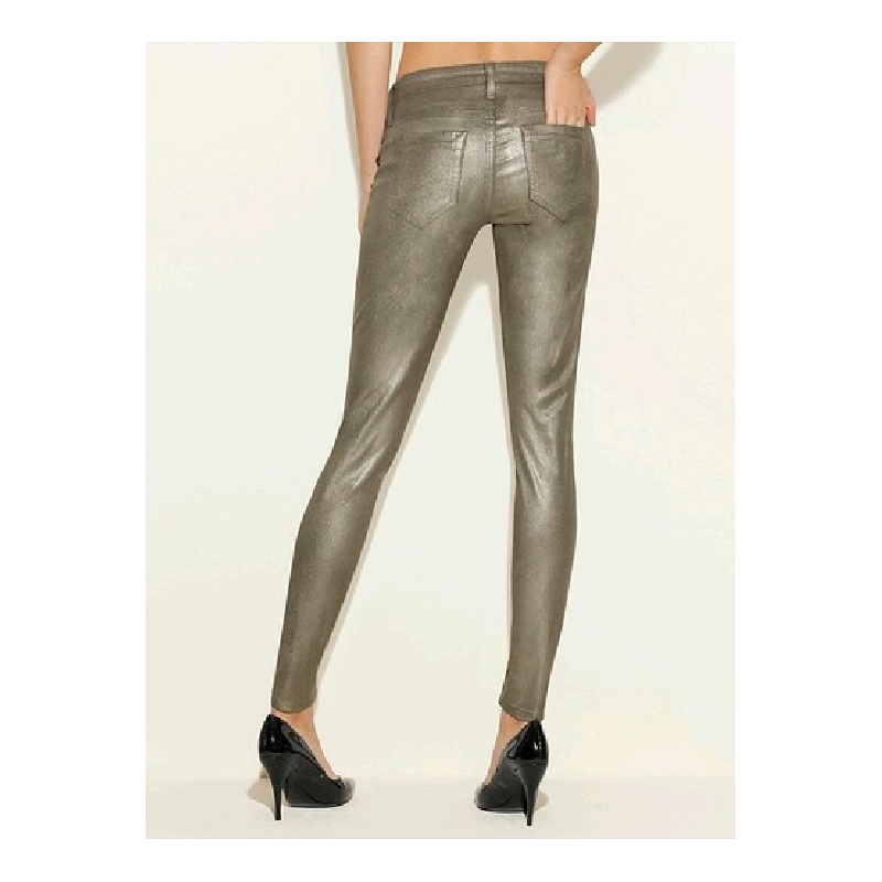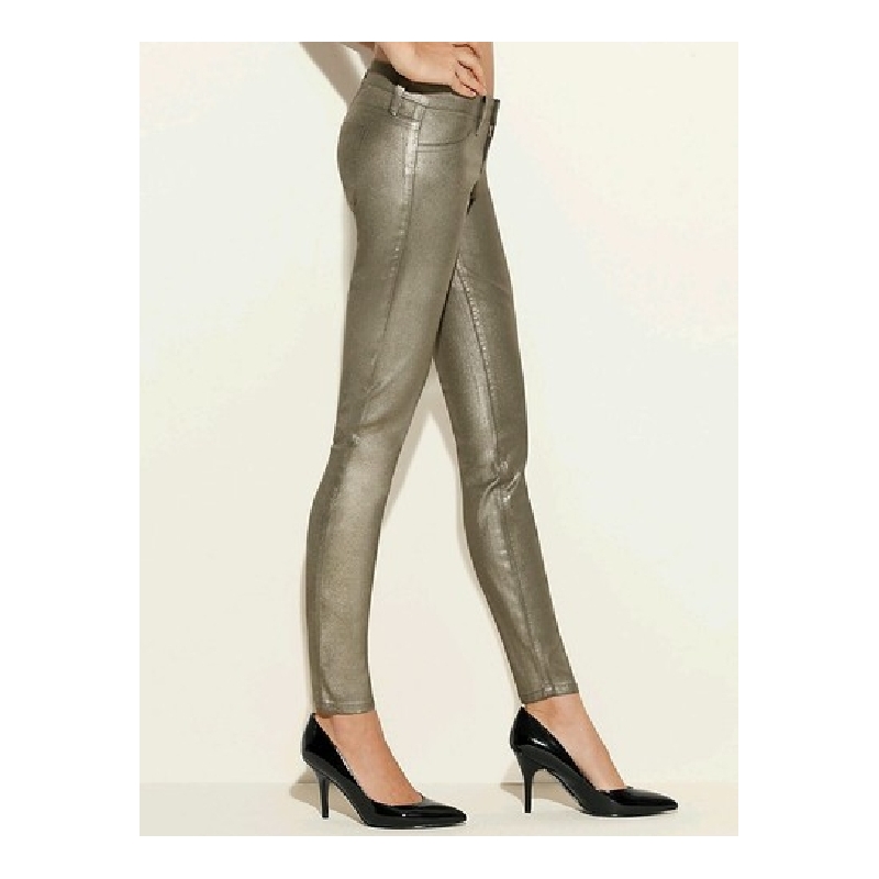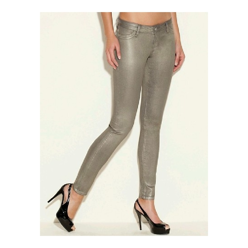 Blugi ultra skinny metalici, cerati, cu aspect de piele