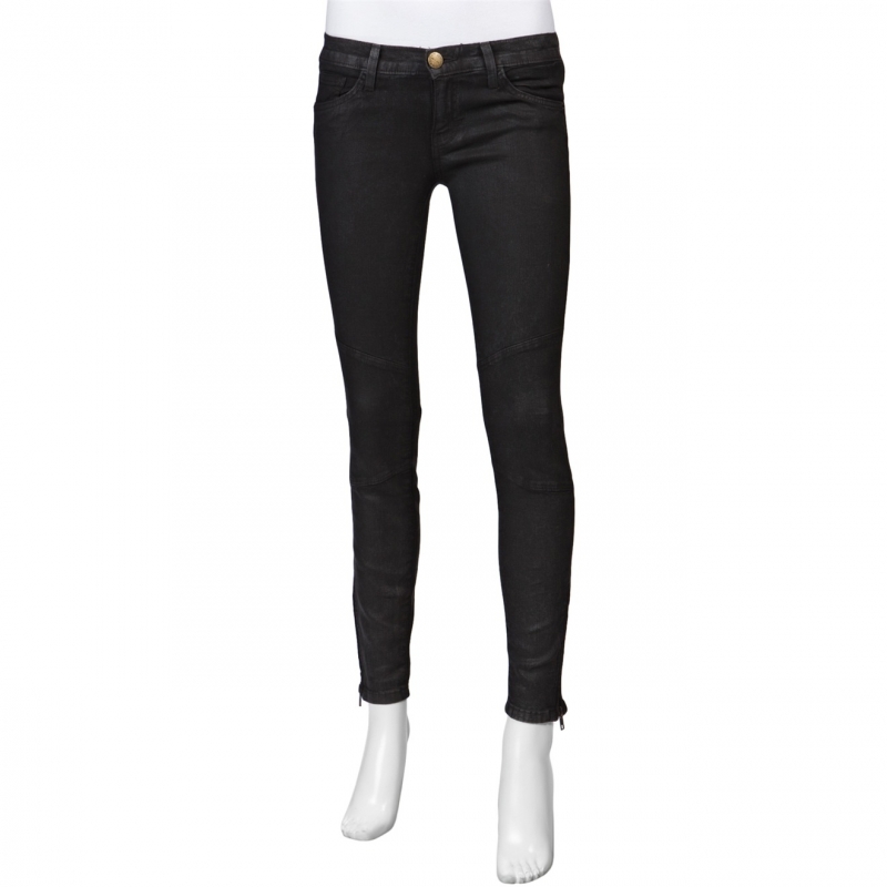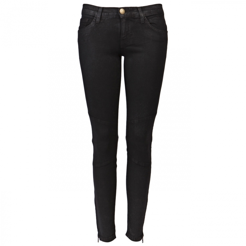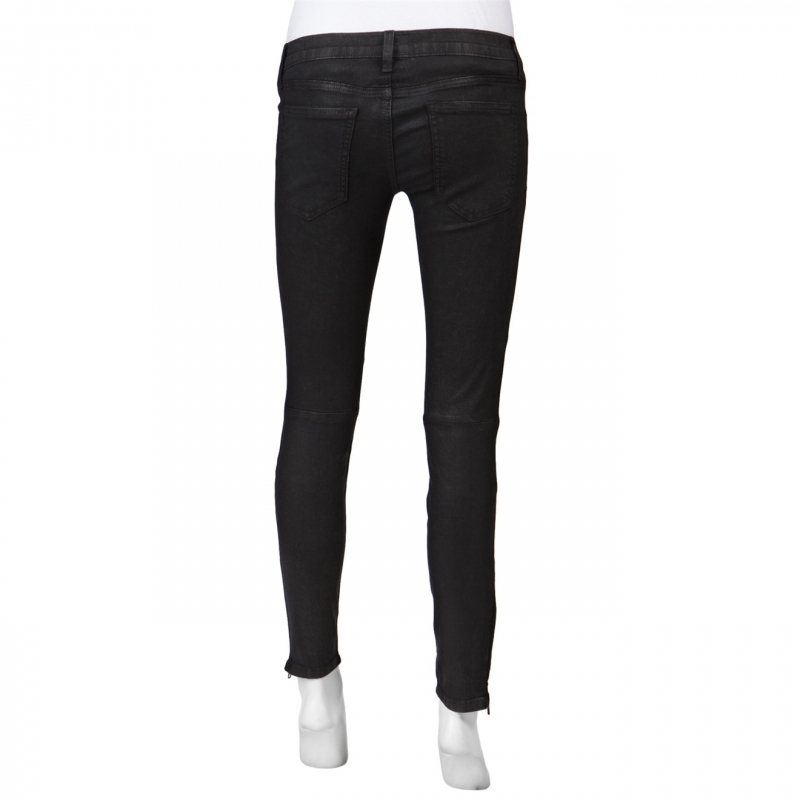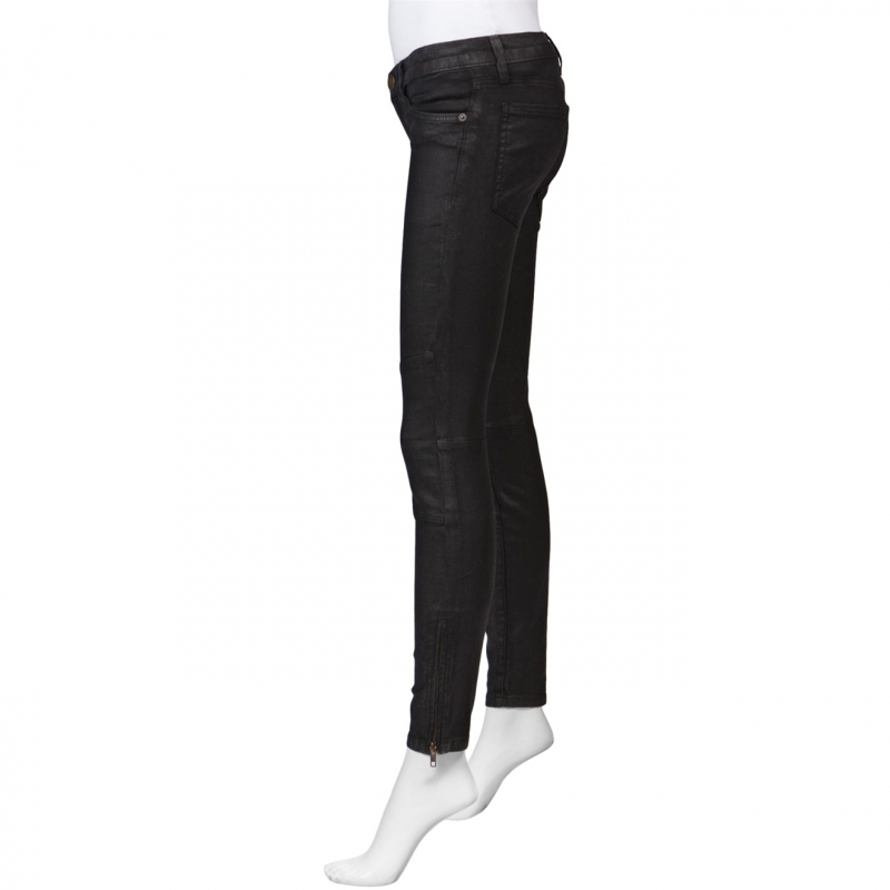 - Pantaloni ultra skinny cu cusaturi moto si aspect de piele.