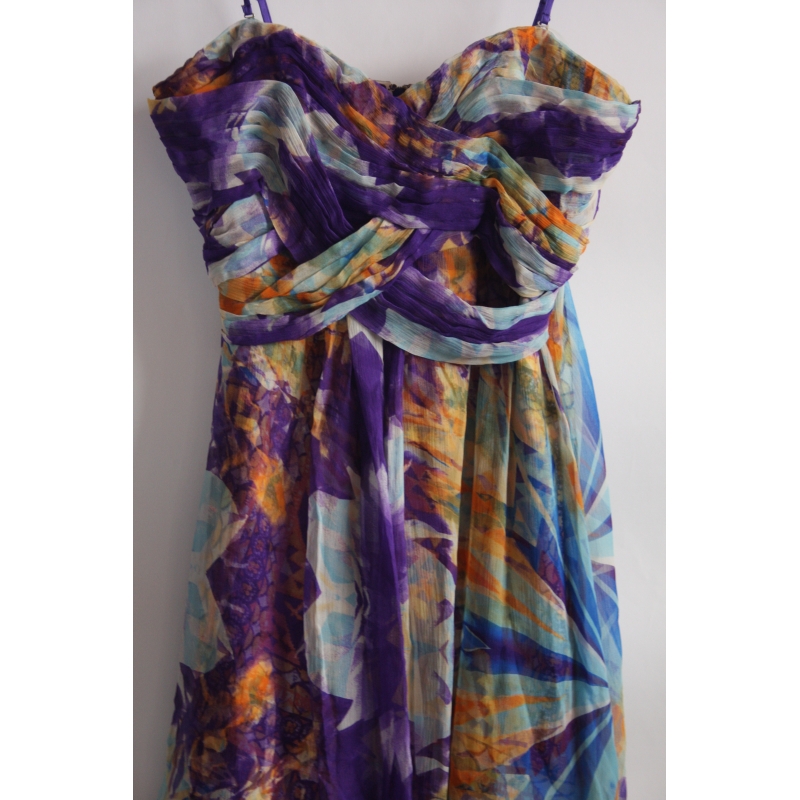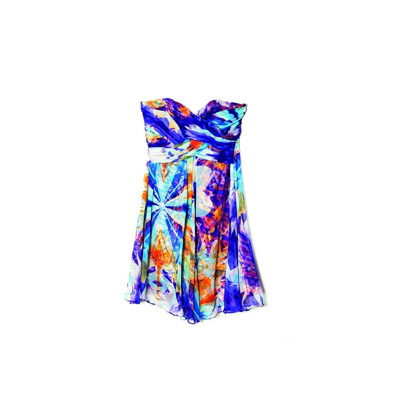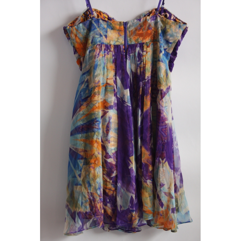 Rochie babydoll din matase naturala, cu print floral abstract
