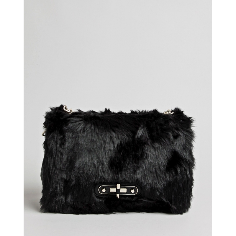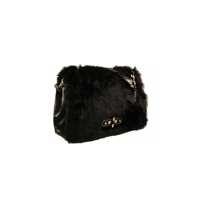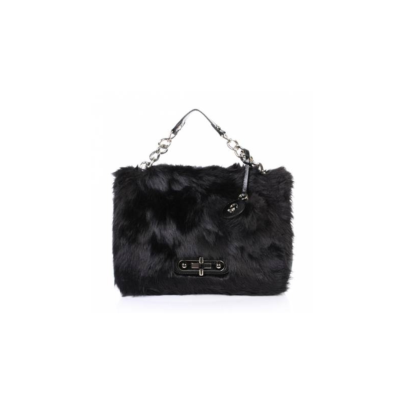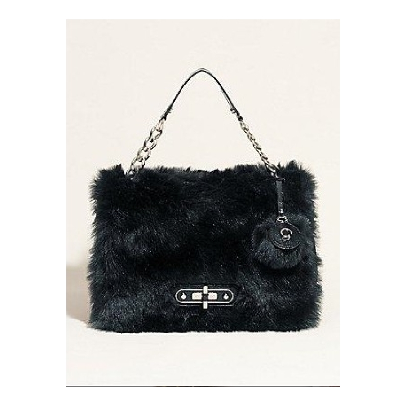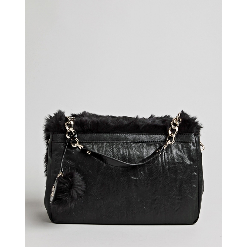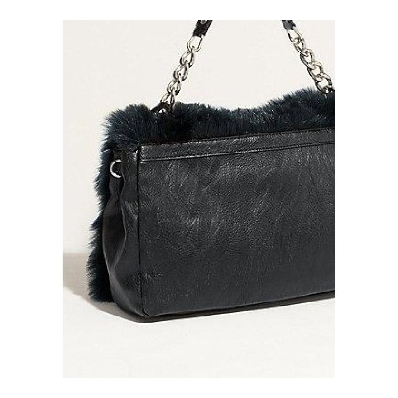 Geanta mare de mana sau umar, cu capac acoperit cu blana eco