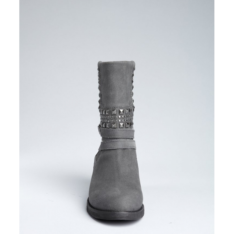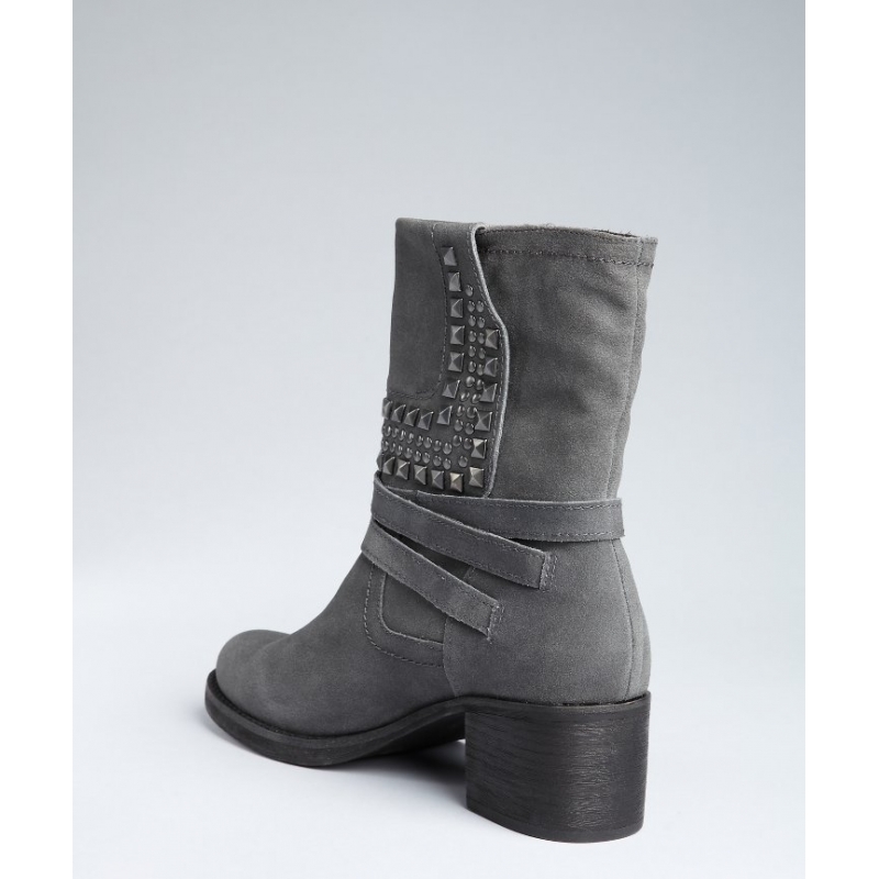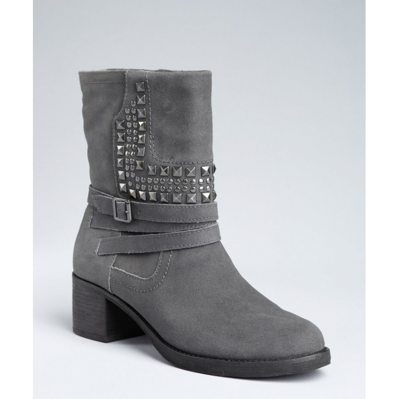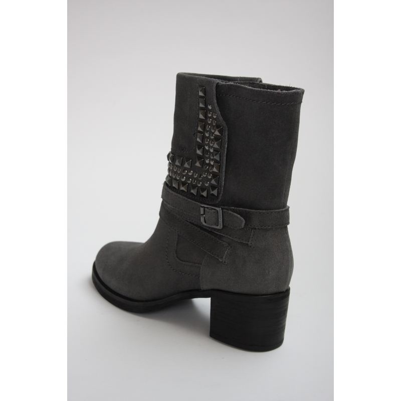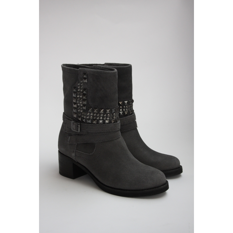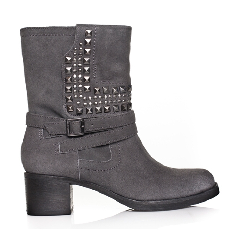 Botine moto din piele, cu toc jos, gros si tinte metalice