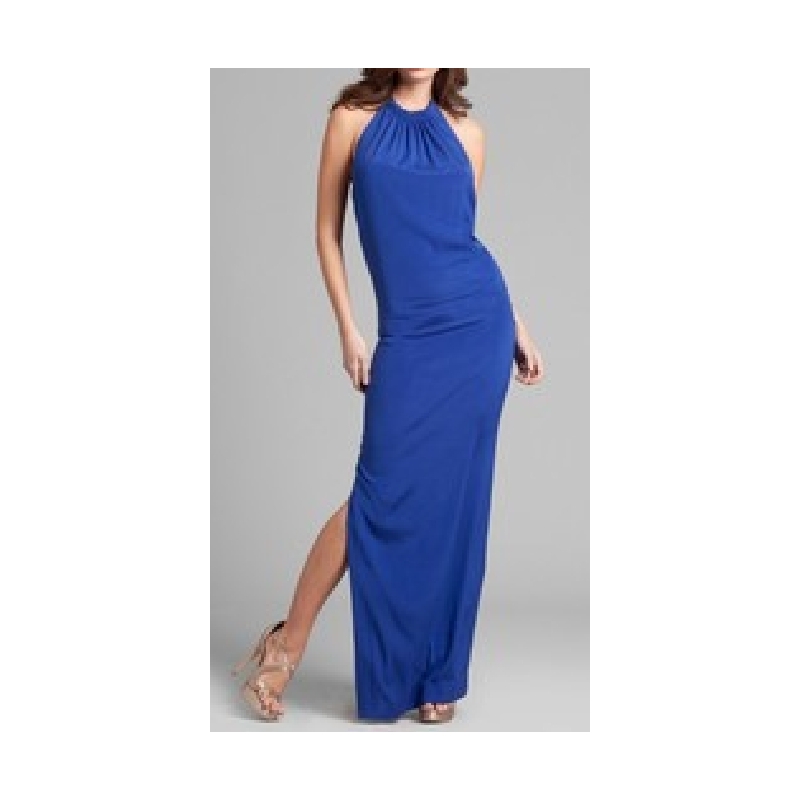 - Rochie maxi, cu prindere cu o bareta din piele naturala, dupa gat, spatele gol si despicata pe un picior.