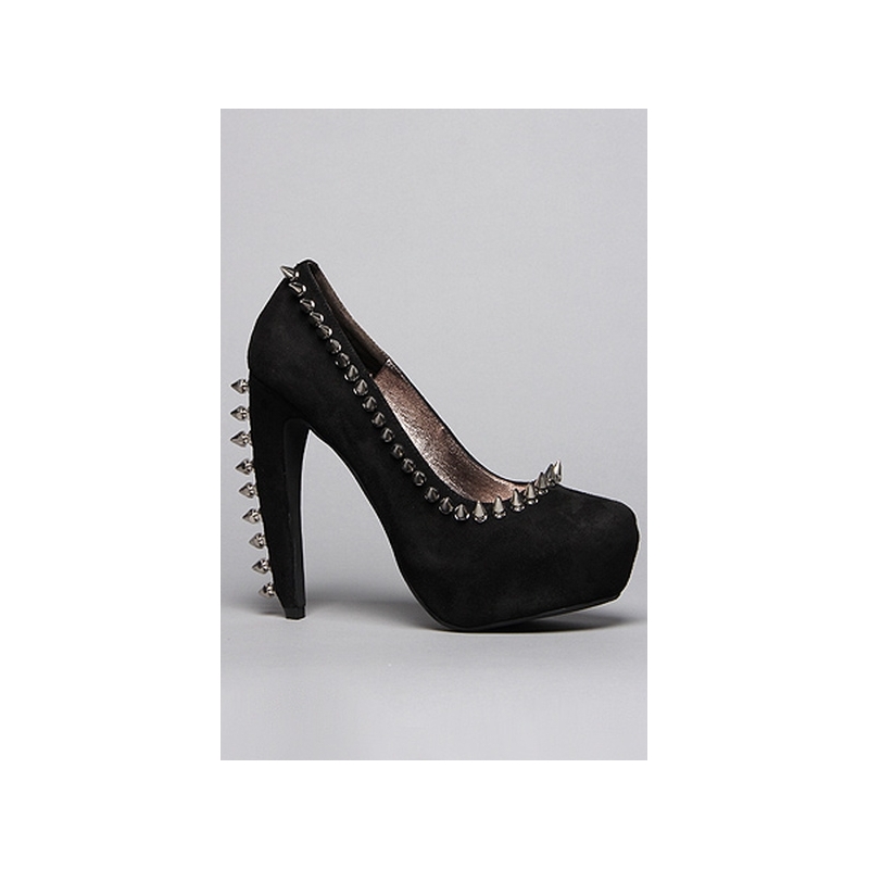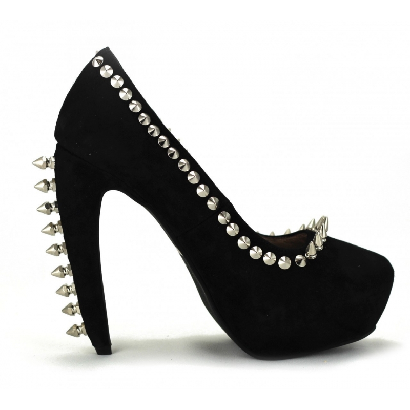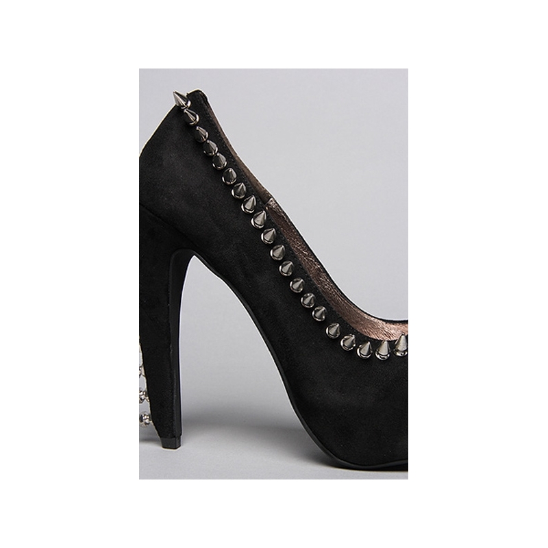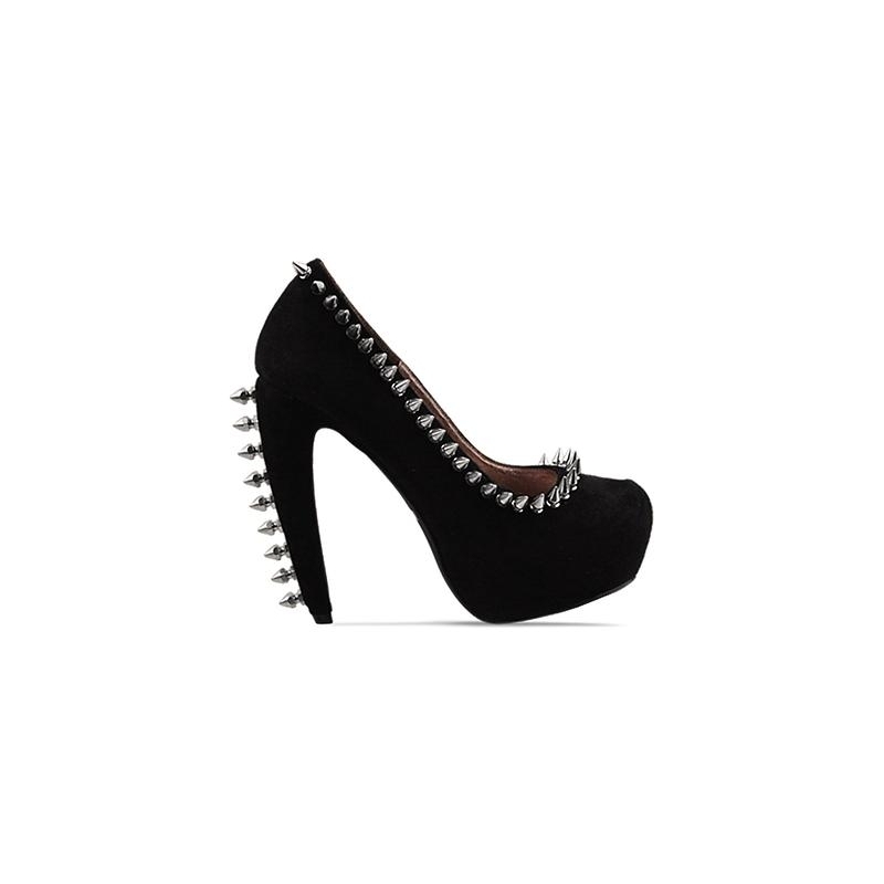 - Pantofi pumps din piele cu toc curbat, bot migdala, accesorizati cu tinte si tepi