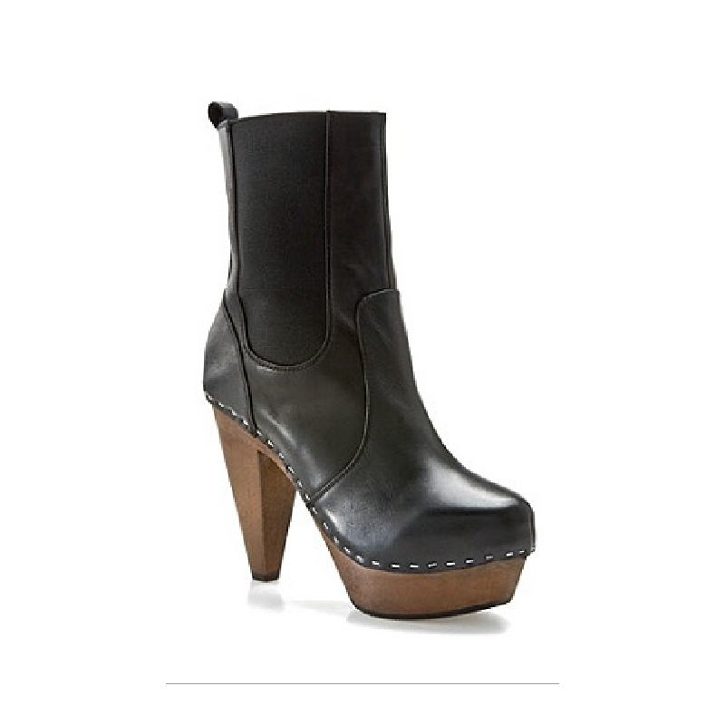 - Botine din piele cu insertie de elastic si platforma din lemn.