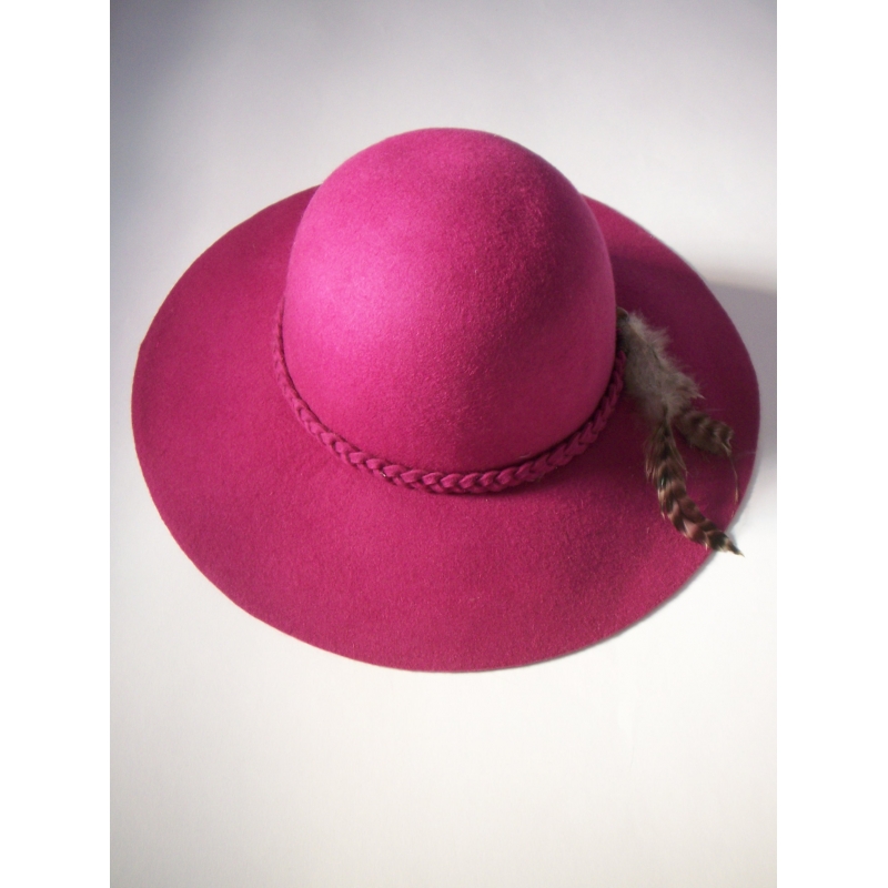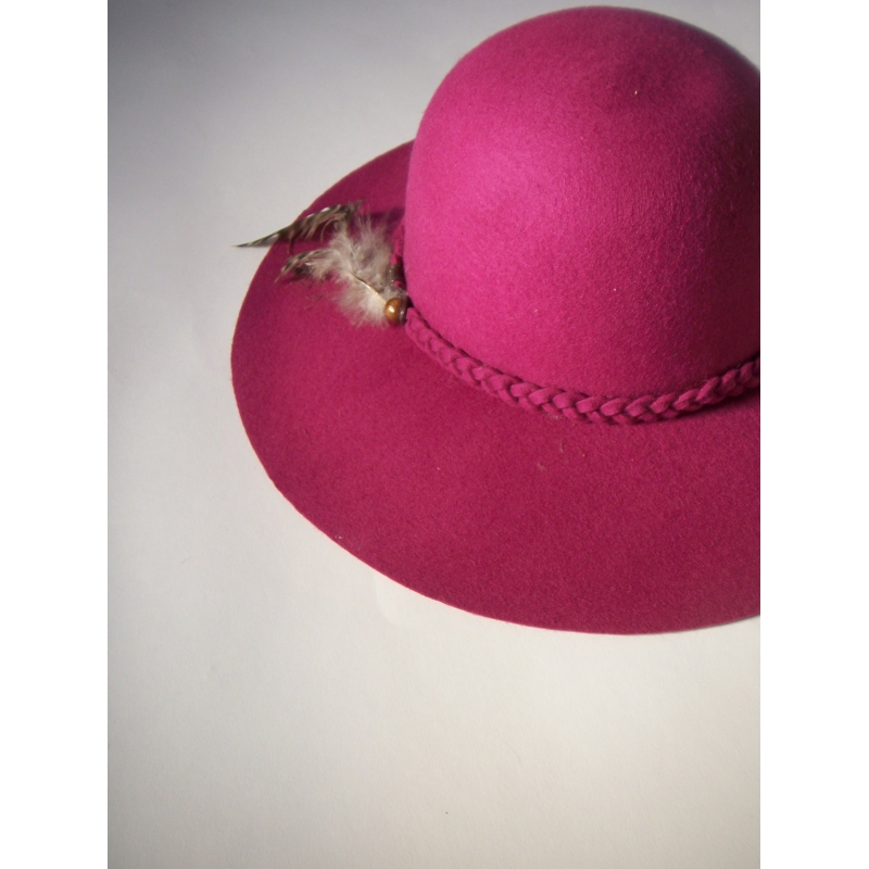 - Palarie din lana, cu bor larg floppy, accesorizata cu pene naturale.