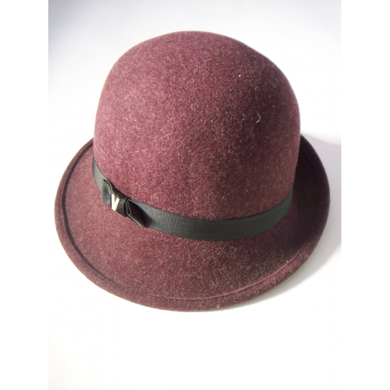 - Palarie fedora din lana cu bor larg asimetric, accesorizata cu funda.