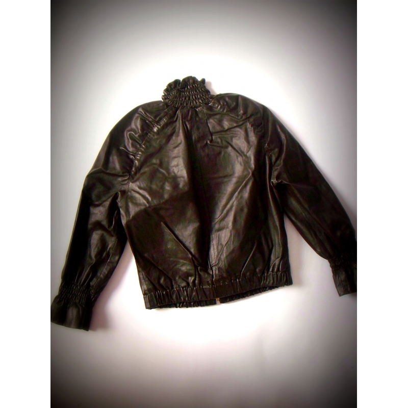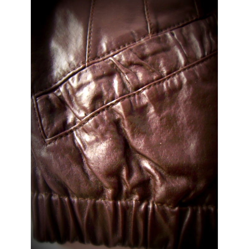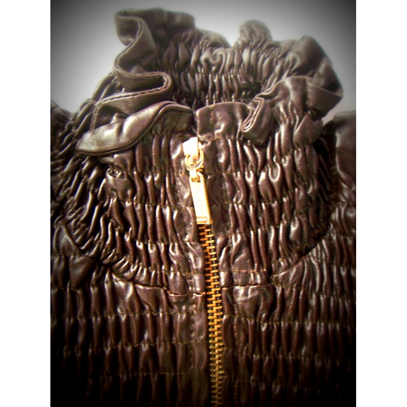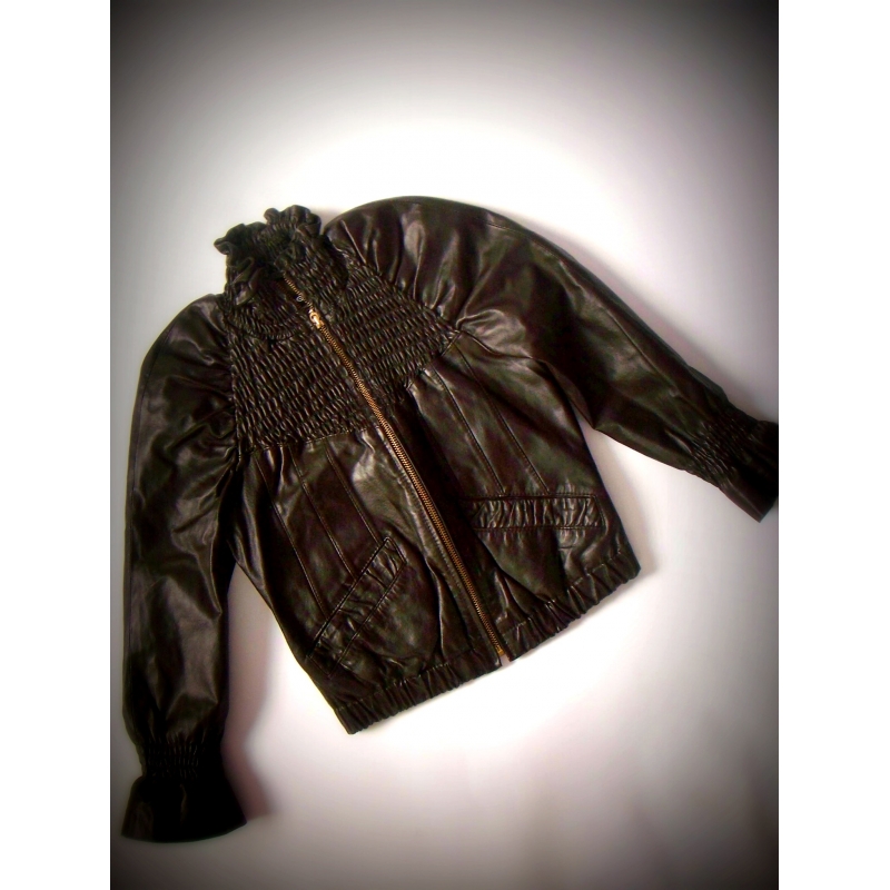 Geaca scurta din piele, cu maneci 3/4 raglan si guler inalt, gofrat