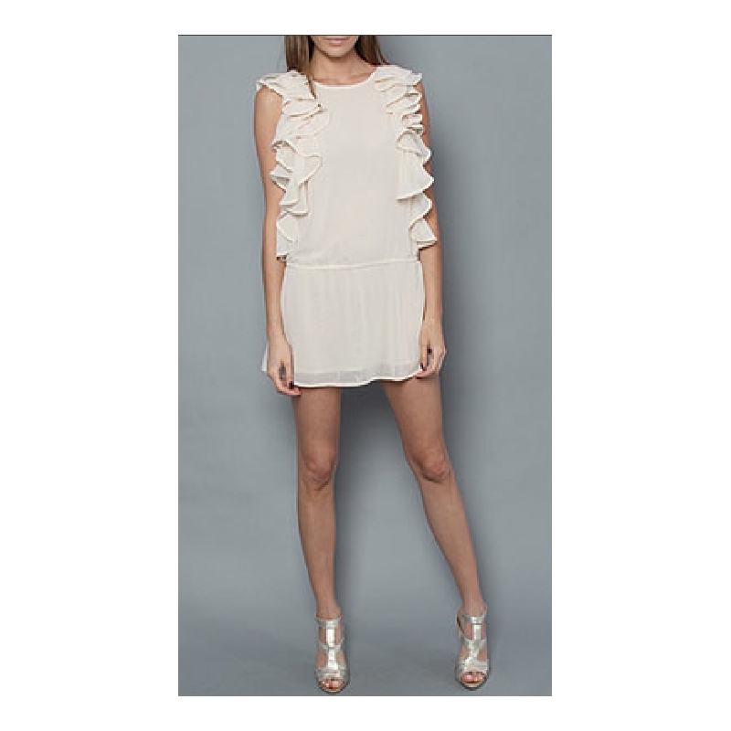 Rochie din chiffon cu volane supradimensionate verticale