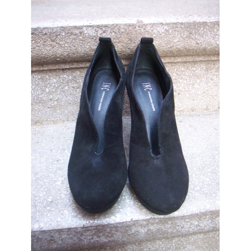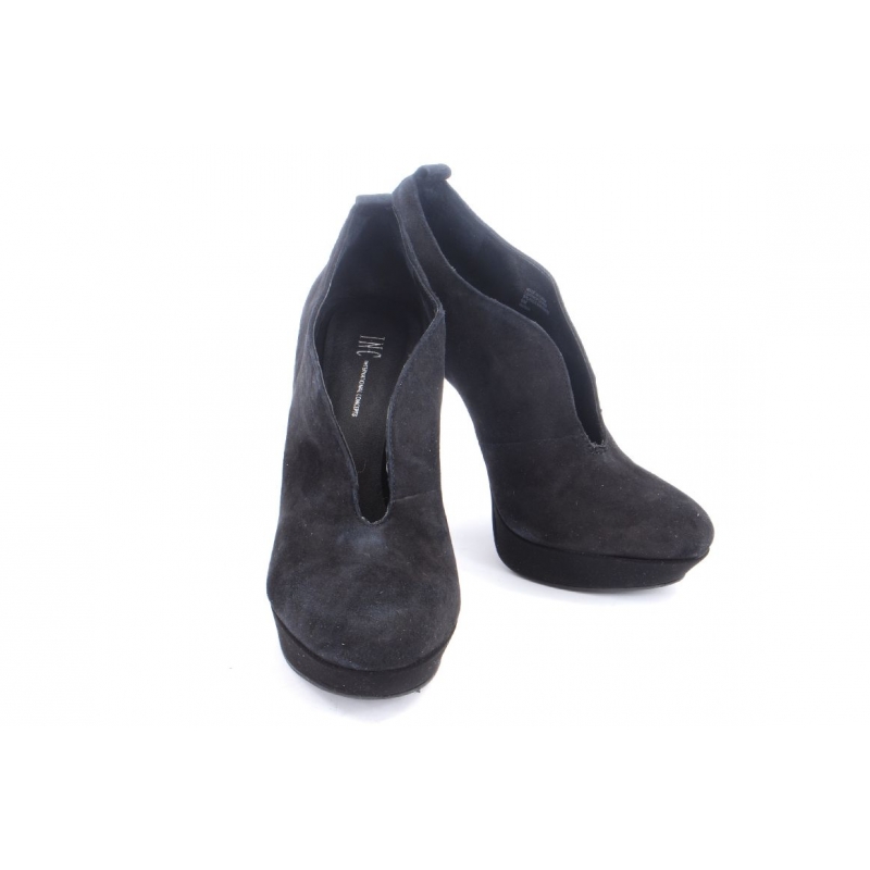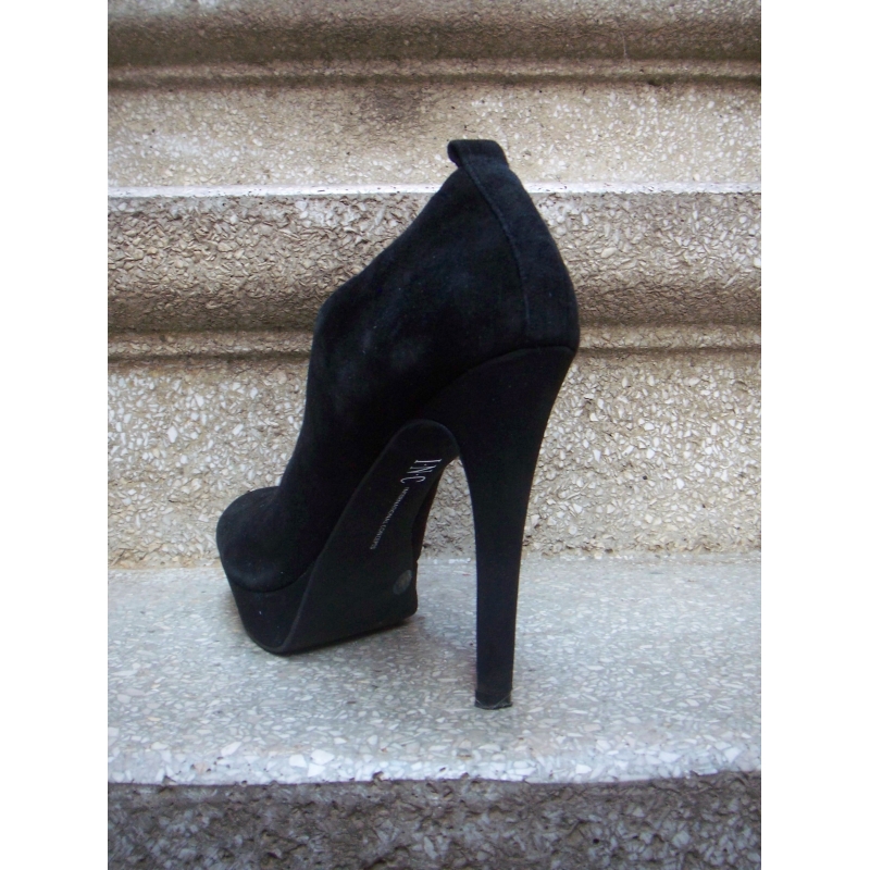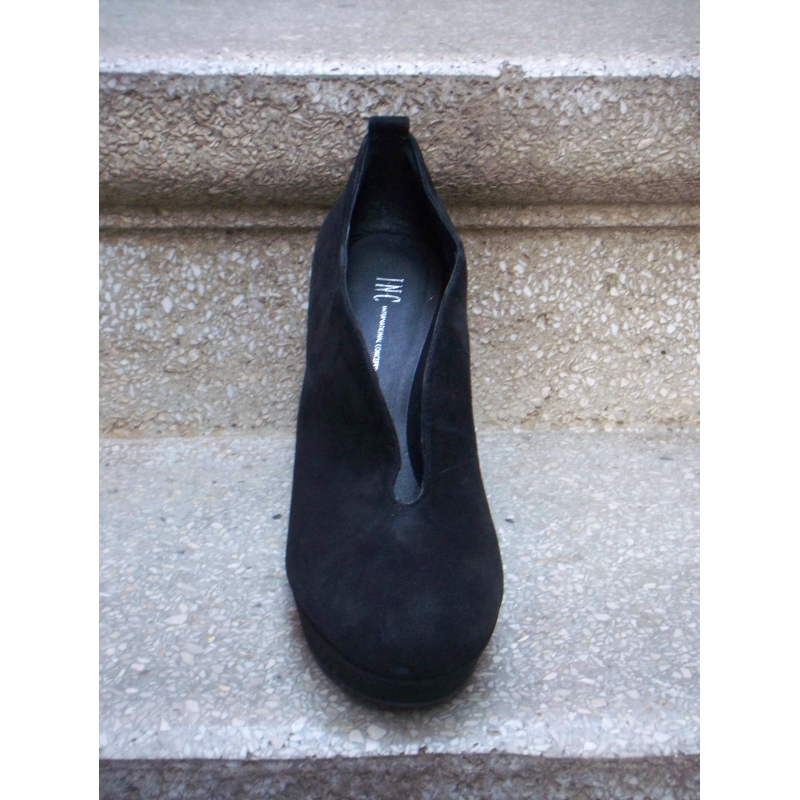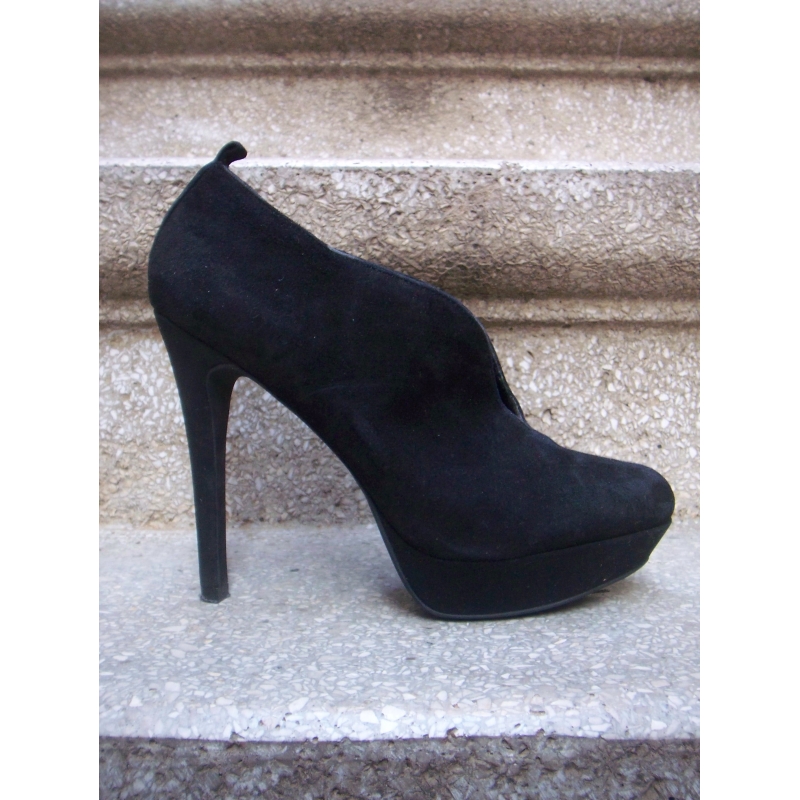 Botine din piele intoarsa despicate vertical, cu platforma si bot alungit