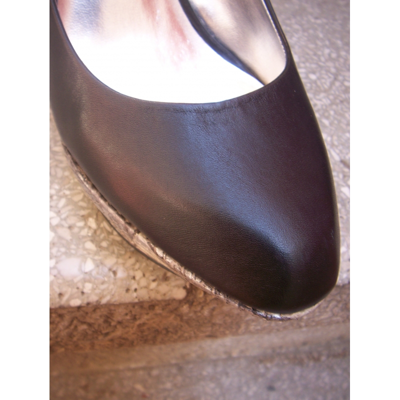 Pantofi pumps din piele, cu toc hexagonal, platforma dubla si varf prelung tesit