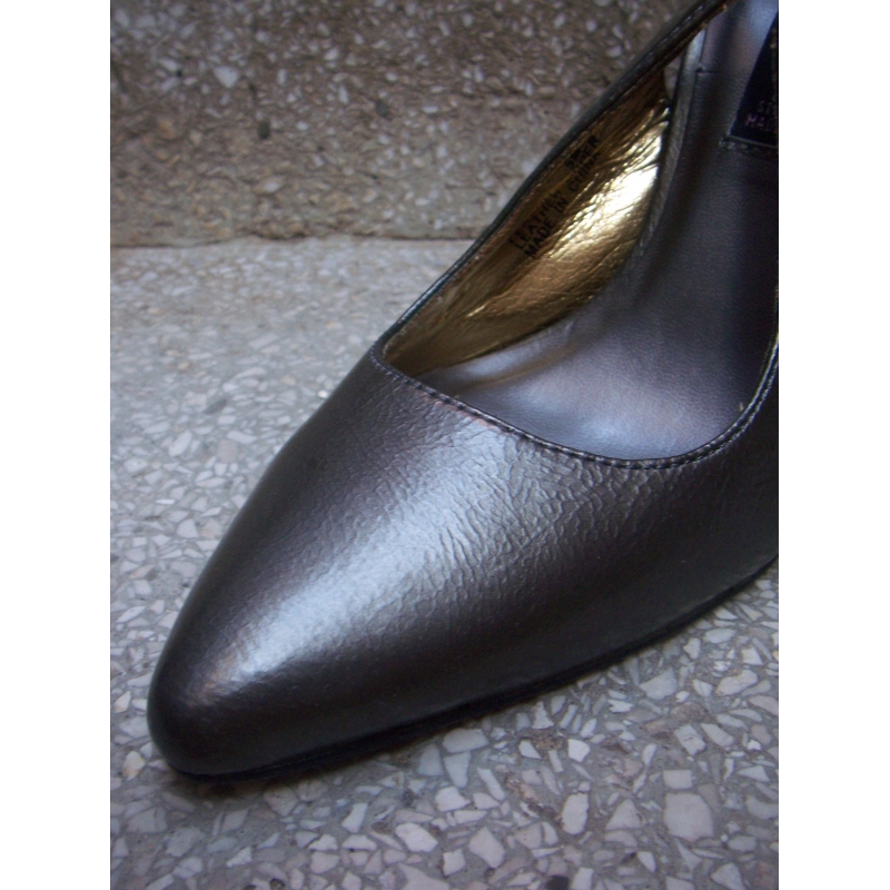 Pantofi pumps din piele lacuita, cu varf ascutit si decupati la spate, cu bareta pe calcai