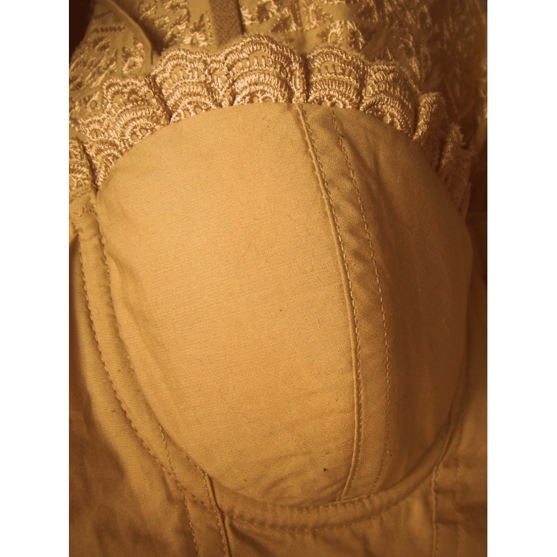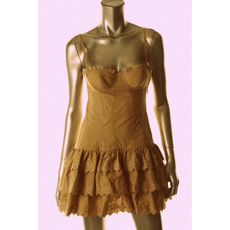 - Rochie cu bustiera push-up si fusta cu volane brodate, dantelate. Bretele reglabile, se inchide cu fermoar ascuns intr-o parte.