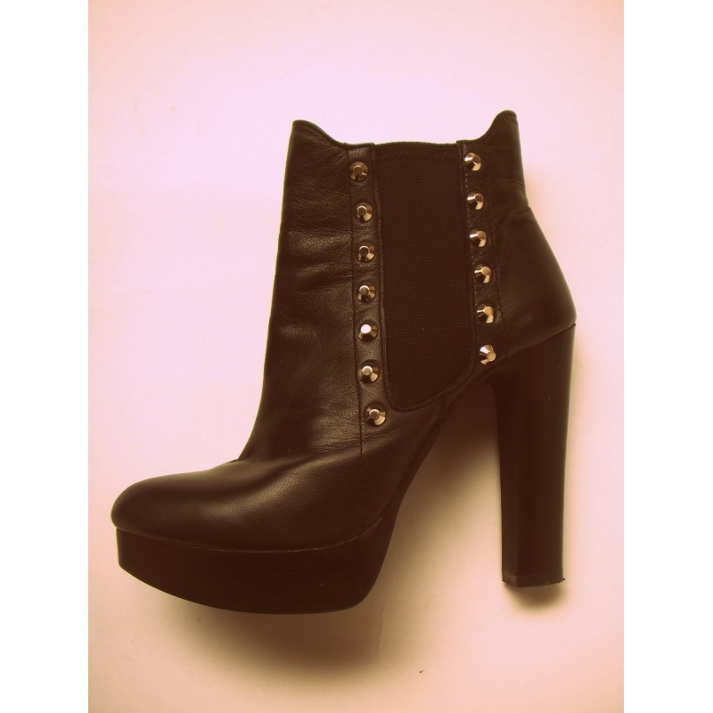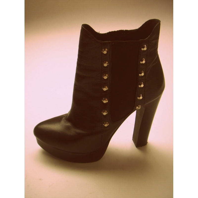 Botine din piele naturala, cu insertie de elastic la nivelul gleznei si accesorizate cu tinte batute.