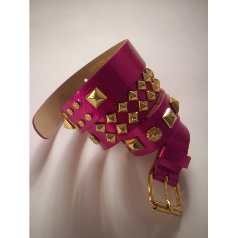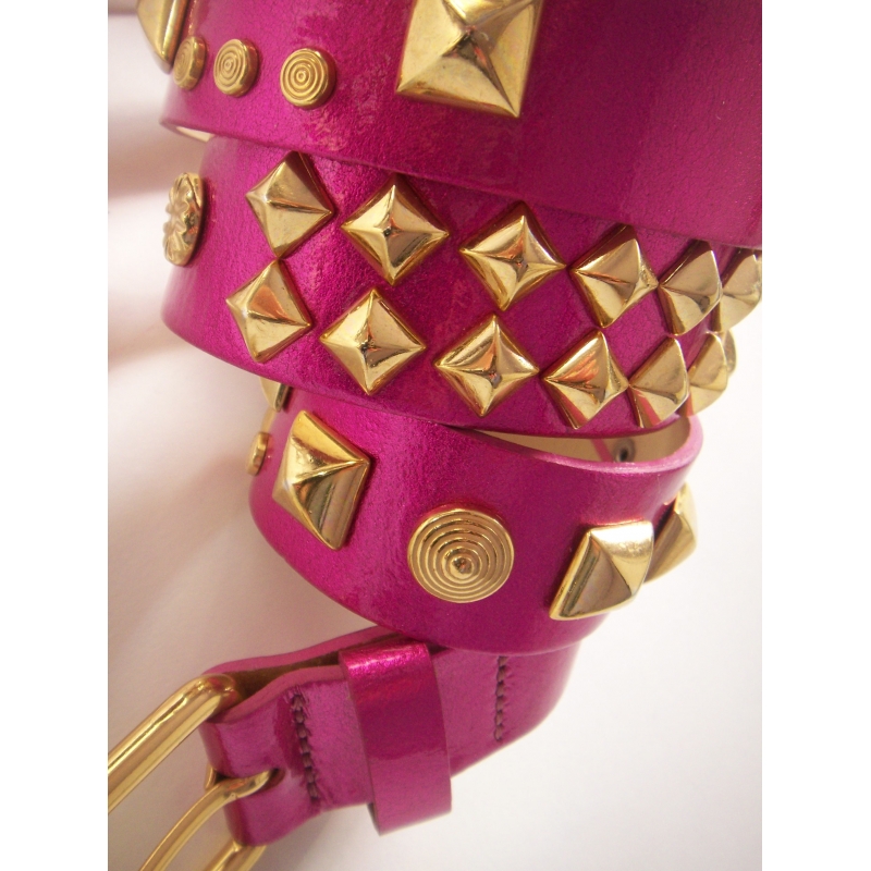 Curea din piele lacuita neon, accesorizata cu tinte metalice masive