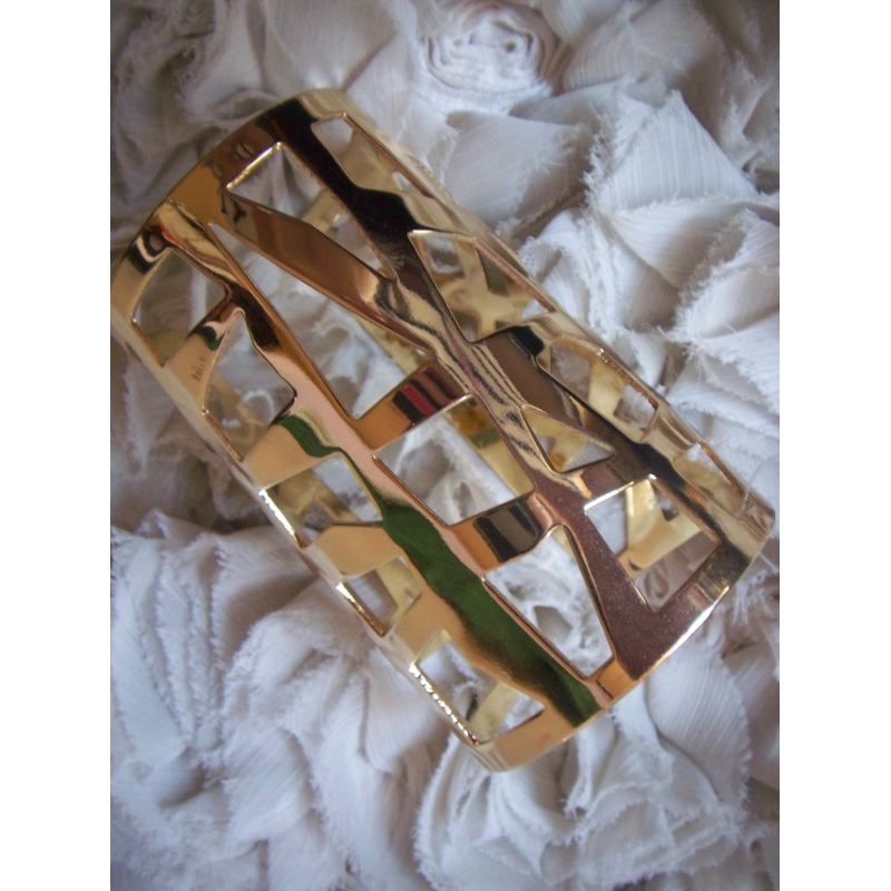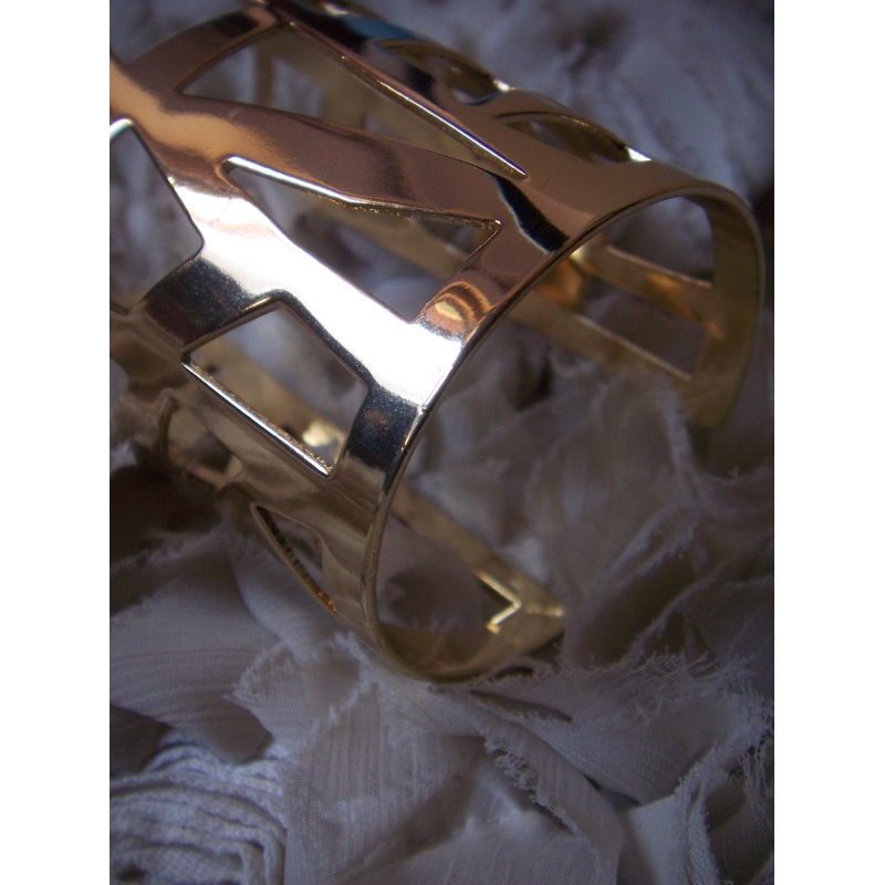 Bratara metalica efect oglinda, fixa, cu decupaje de forme geometrice