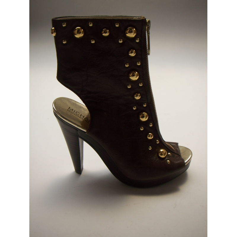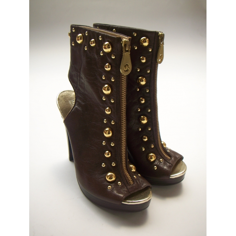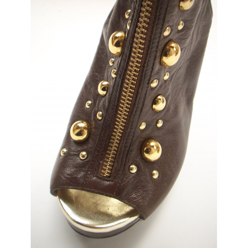 Sandale / botine cu varf si calcai decupate, accesorizate cu tinte batute si bumbi metalici