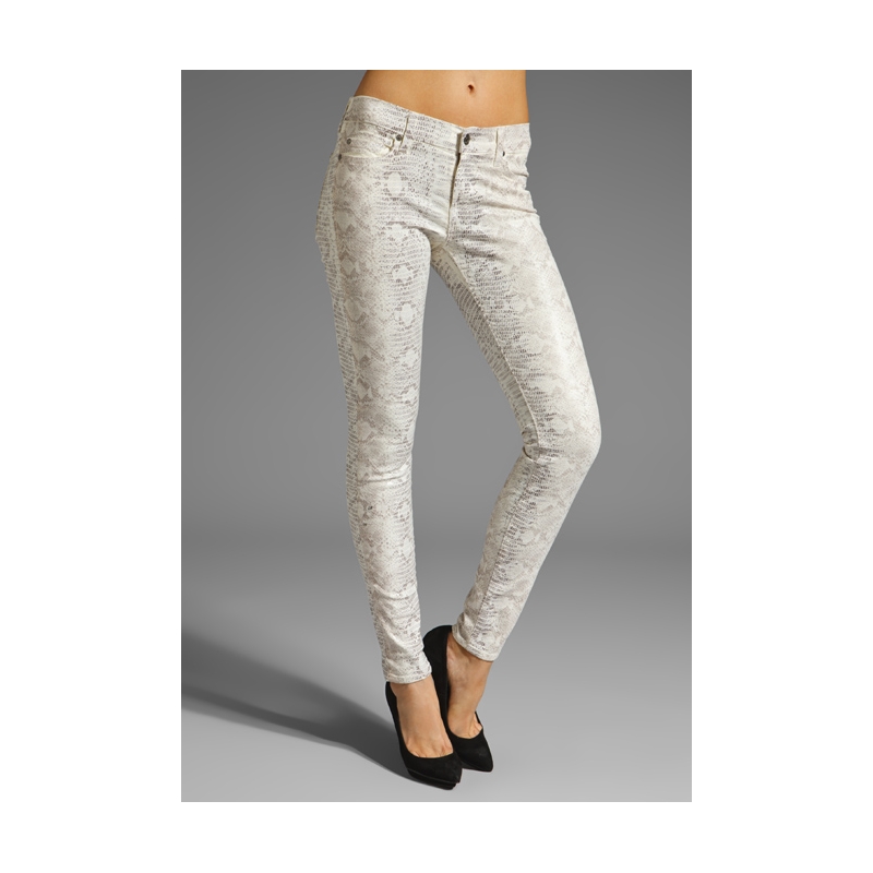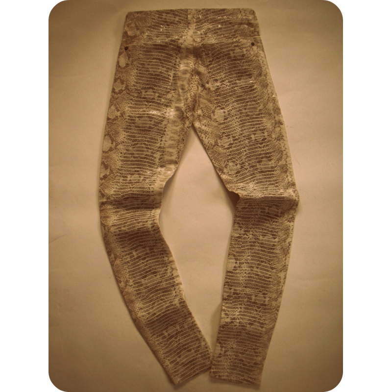 Blugi skinny cu aplicatii texturate "piele de sarpe"