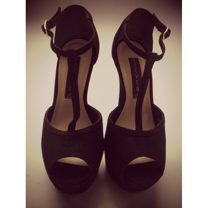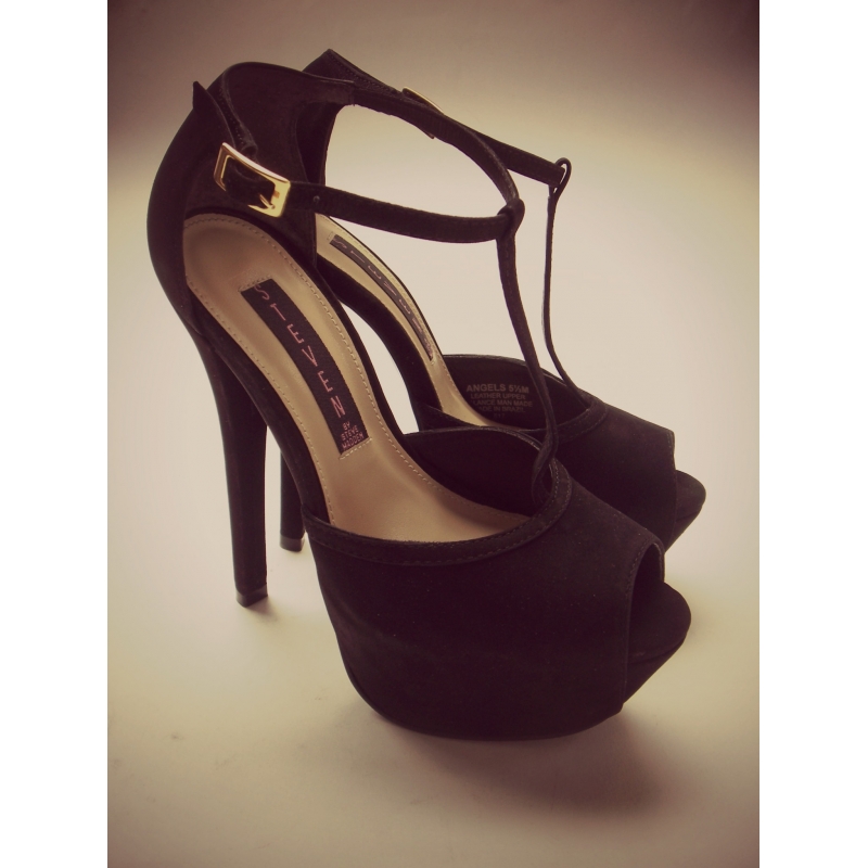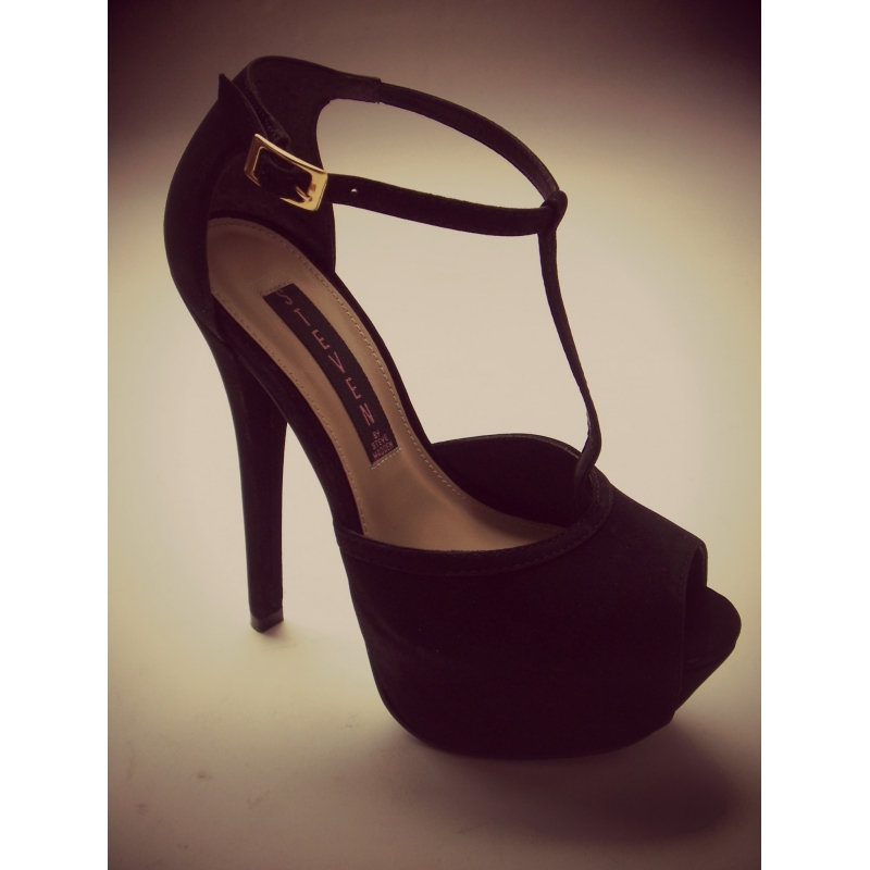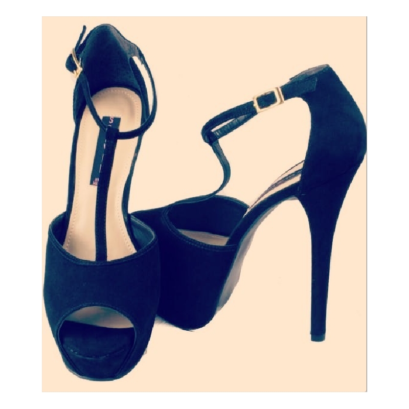 Sandale T-strap din piele, cu platou ascuns si toc supradimensionate