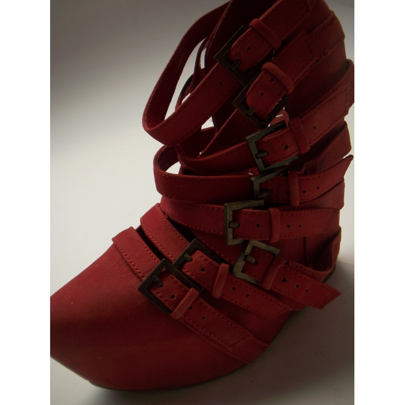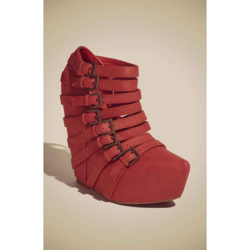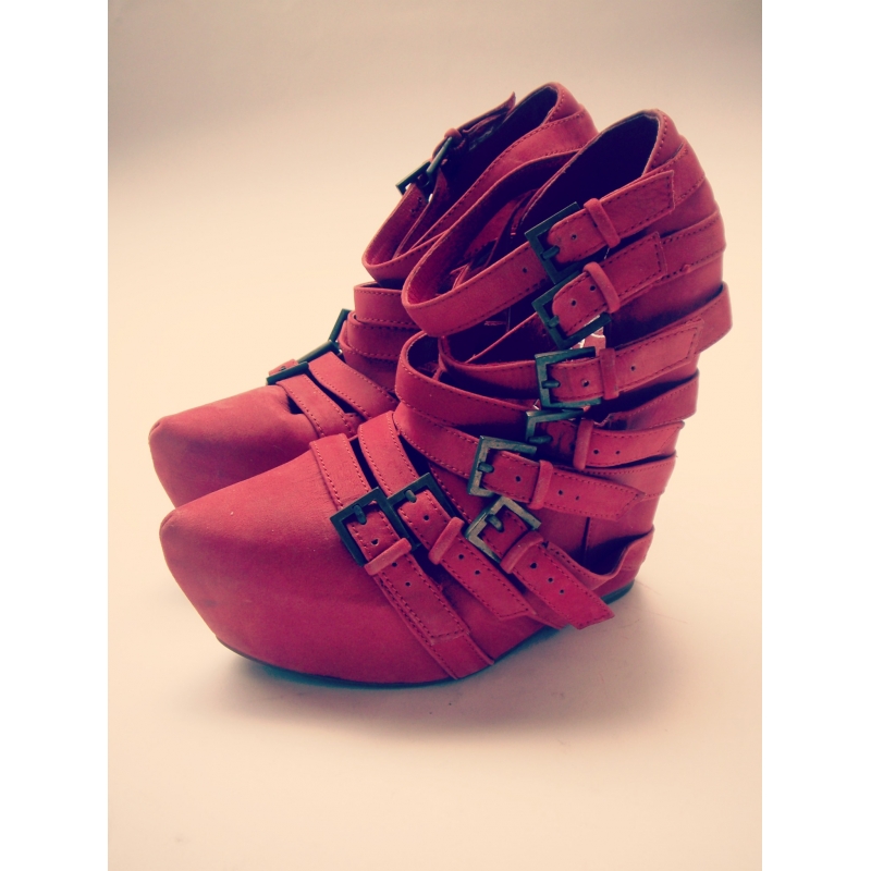 Pantofi din piele, cu platforma supradimensionata si varf ascutit, accesorizati cu multe barete cu catarame